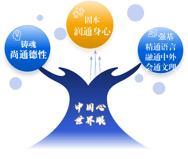北外附校以“尚通德性、润通身心、精通语言、融通中外、会通文理”为育人目标,构建支持学生终身发展的“通”课程体系,打造德育铸魂、健康固本、能力强基的育人闭环,致力培养学生成为“品德高尚、身心强健、语言特长、视野开阔、文理兼修”的复合型国际化预备人才。