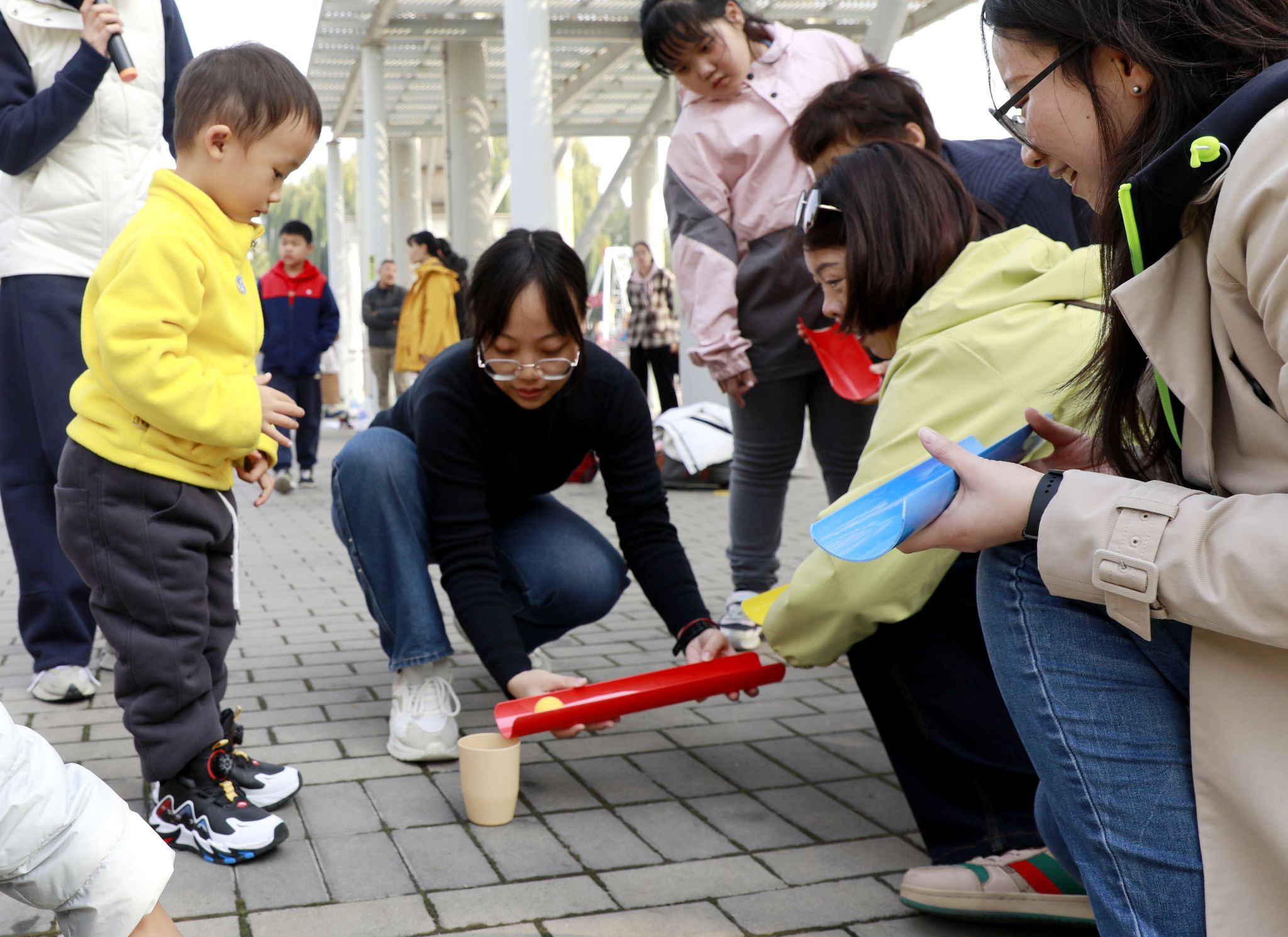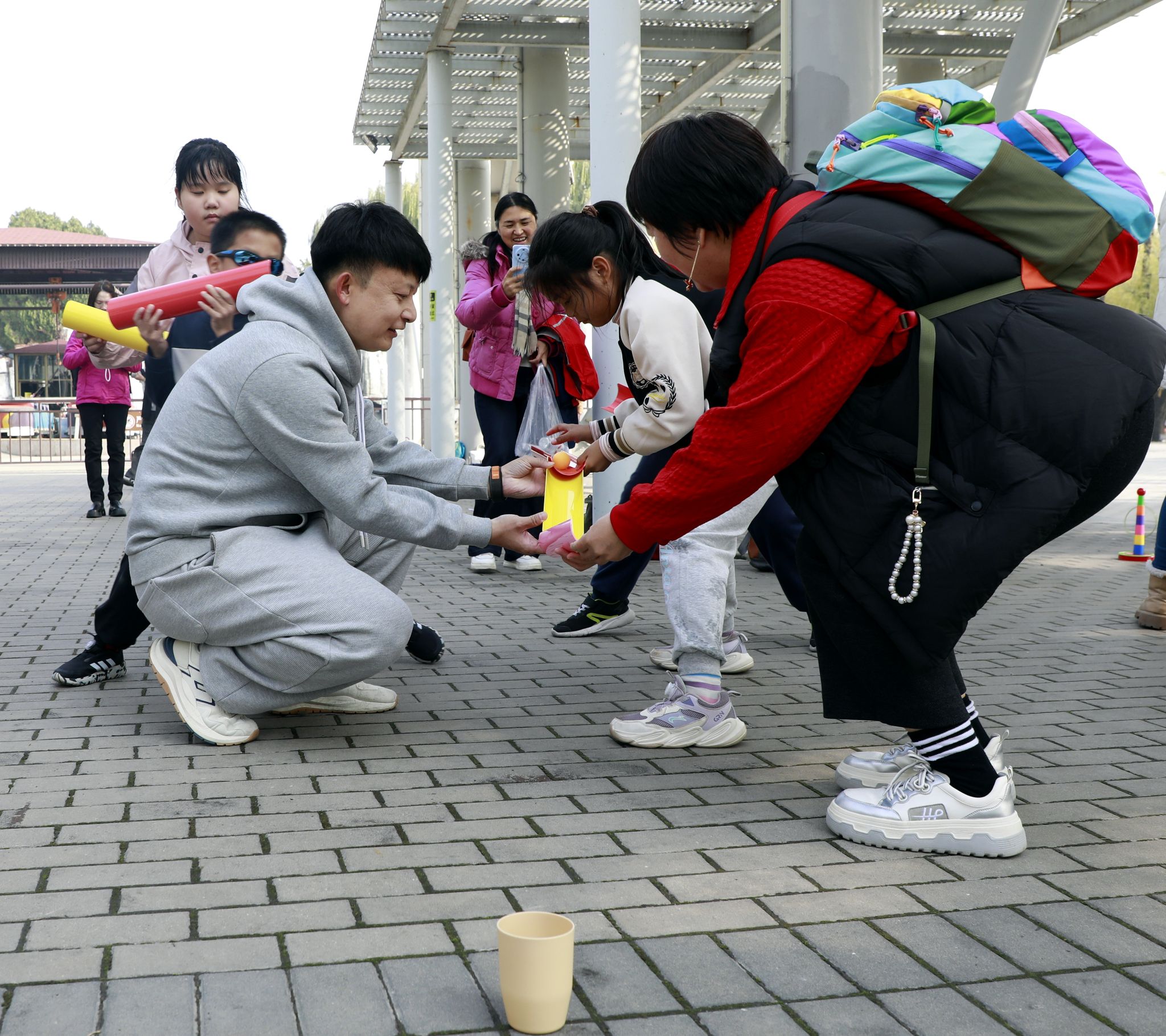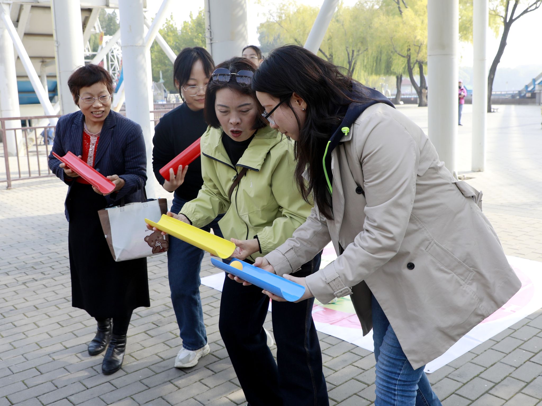 午后,趣味拓展活动正式拉开帷幕。全体教职工随机分为数个小组,通过破冰游戏,迅速打破了部门的界限,现场气氛热烈而融洽。“重走长征路”带领大家重温红军在抗战艰难时期的革命历史,考验团队的默契与协作,队员们需要心往一处想、劲往一处使,才能抵达胜利的终点;“乒乓接力”则是考验队员们紧密配合,通过手中的轨道将“能量球”安全送达终点。“套圈小游戏”、“沙包投靶”则锻炼大家的投掷能力。每一个项目都不仅是智慧与体力的角逐,更是团结与信任的锤炼。活动中,有紧张激烈的角逐,也有相互扶持的鼓励;有策略讨论时的严肃认真,也有成功后的欢呼雀跃。平日里站在三尺讲台上的老师们,此刻全然投入,展现出了课堂之外的活力与激情。