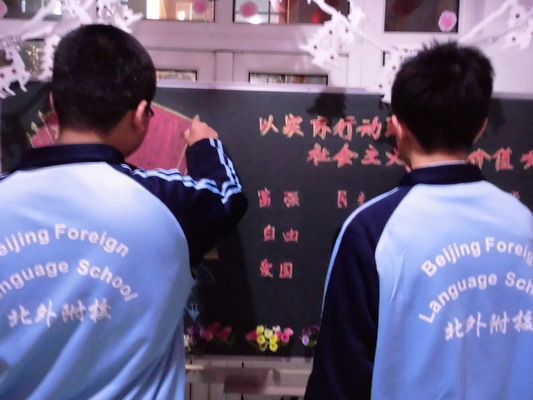 陈正阳与李坤在做板报