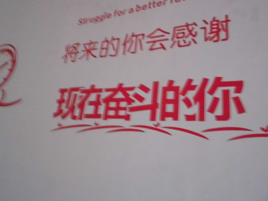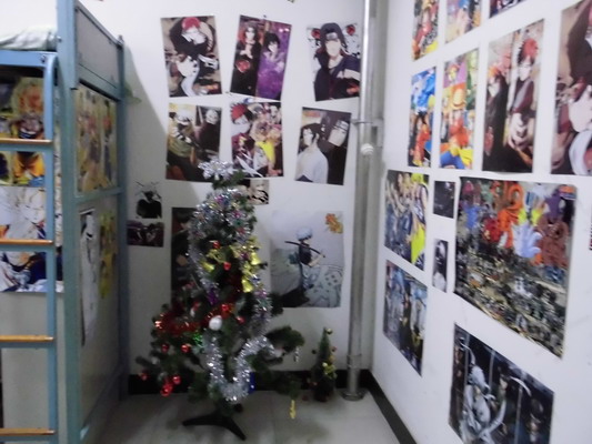环顾四周,宿舍的门板上都无一例外地贴着励志的门贴。而门贴的版式内容也与年级有关。初一的门贴主要有关于读书习惯的养成,提醒同学们要热爱读书,多读书,丰富自己头脑,增长知识;初二的门贴都与人的优良的品行有关,旨在帮助他们努力提升个人素养,成为一名品行优良的好学生;而初三宿舍的门贴多是一些名言警句,它们则是起到了激励初三学生努力学习的作用。在每间宿舍的墙壁上张贴层出不穷的海报,有励志读书的,励志学习的,甚至还有励志减肥的,真是多姿多彩,应有尽有。有的宿舍张贴的是美丽的动漫,表现出了宿舍主人天真童趣;有的同学贴上了炫酷的体育明星,表示了他们对明星的喜爱,也阐明了自己的志向:向体育明星学习,努力克服当前的困难,刻苦努力,勇攀高峰!还有的人贴上了动画版的名言警句。将新颖的动漫人物与名言相结合,显示出同学们高雅的情操。为了迎接节日的到来,初一年级的每间宿舍中都摆放着一棵圣诞树,还挂满了色彩斑斓的小挂饰。在灯光的照射下,它们耀着金色的光芒,营造出了浓浓的圣诞节的气氛,使人们感受到了节日的喜庆与欢乐。