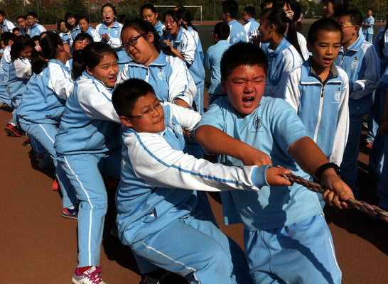 10月13日下午,我校初一年级举办了拔河比赛。荣获比赛第一名的是初一(3)班,第二名:初一(8)班;第三名:初一(5)班;第四名:初一(2)班。