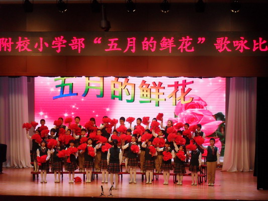 5月21日下午,小学四年级在国瑞厅举行了“红五月”歌咏比赛。16时20分,第一个上场的班级——四年级(7)班闪亮登场。