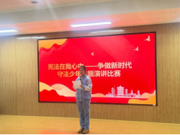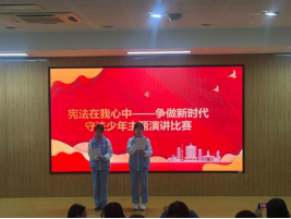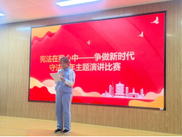 在晨读活动基础上,初二年级开展了以“宪法在我心中——争做新时代守法少年”为主题的演讲比赛。经过班级初赛与年级选拔,共有13名同学进入学校决赛,中学部道德与法治学科教师出席并担任评委,初二年级师生代表现场观摩了比赛。