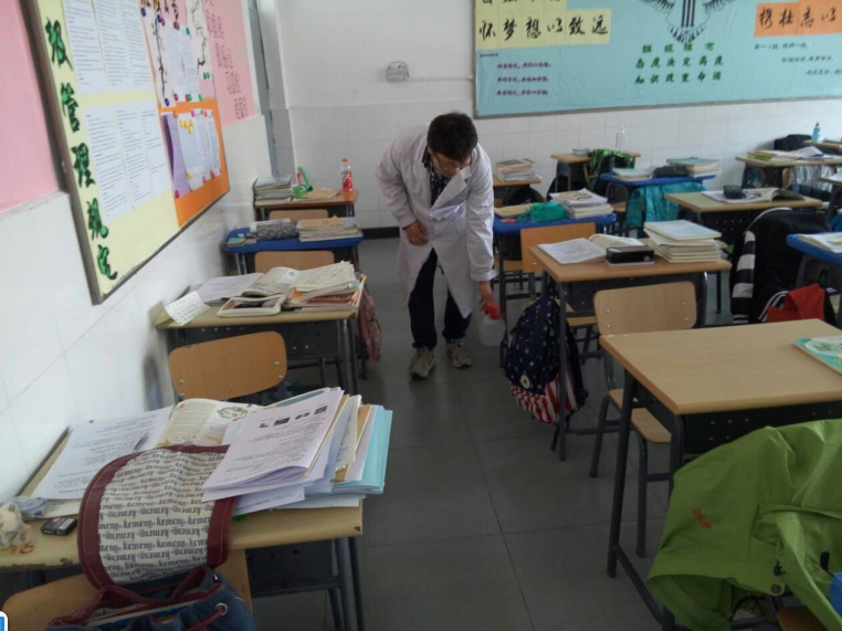 揣大夫为学生宿舍消毒