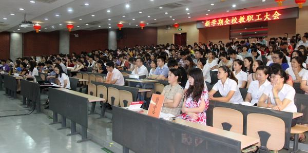 8月22日,我校在二层阶梯教室召开新学期全体教职工大会。北京外国语大学校长助理、我校校长林卫民,常务副校长王彤,副校长、副书记高雁鸣出席会议并作讲话。