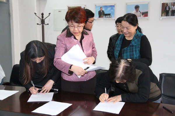 在签订仪式上,林卫民校长代表学校分别与各分管副校长签订了安全责任书,各分管副校长与各年级组长、各处室主任在目标责任书上签了字。