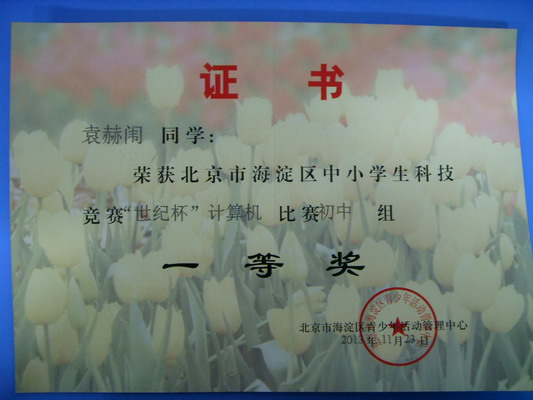 ·【喜报】我校学生在海淀区中小学生“世纪杯”计算机竞赛荣获佳绩