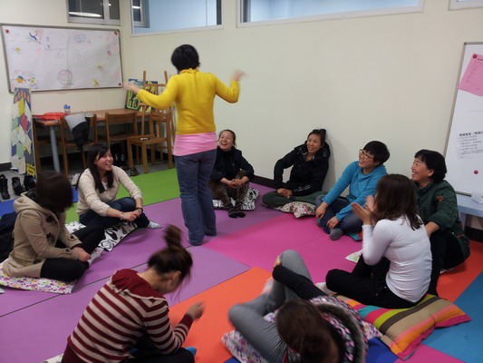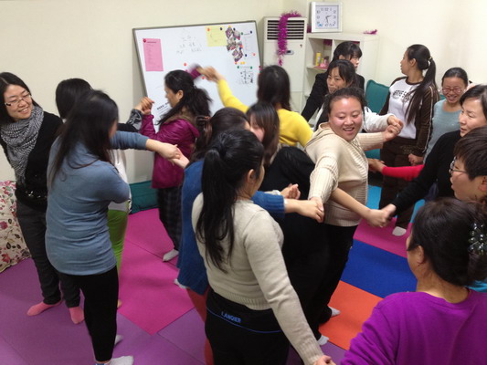 活动在附校主教楼团体心理活动室举办,老师们在活动室里的瑜伽毯地板上围圈儿席地而座。在对活动简单介绍、大家共同约定团体契约后,两位心理老师带领大家通过按摩操/兔子舞等活动做了活动热身,营造了放松、自由、开放的团体活动氛围。紧接着,“破冰之旅——大风吹”、“团体智慧——心有千千结”、“团队合作——同舟共济”三个主题活动一一登场,随着活动的一步步深入,现场气氛热烈非常,每位老师都全身心投入到活动中感受参与的快乐。