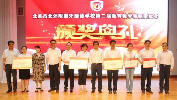北京外国语大学副校长、我校董事长彭龙教授,北京外国语大学校长助理、我校董事、我校校长林卫民研究员,北京外国语大学党办校办主任、我校董事贾德忠,北京外国语大学资产处副处长、我校董事杨诚,北京外国语大学财务处副处长、我校董事梅珍;北京外国语大学审计处处长、我校监事王仁成,北京外国语大学监察处副处长、我校监事刘培元,我校监事、副校长、副书记高雁鸣,我校常务副校长王彤,副校长张继军,副校长于苒出席颁奖典礼,并分别为获奖集体、个人代表颁奖。