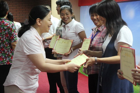接下来由教务处主任王静宣布获奖名单,由校领导们为获奖教师颁奖。