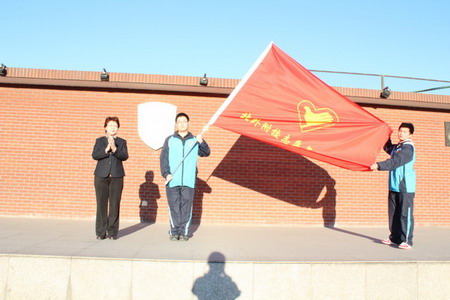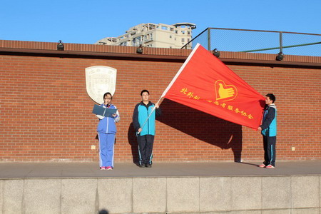今天我们正式成立北外附校志愿者协会,这个一直在默默行动着的社团。下面请常务副校长王彤博士为“北外附校志愿服务协会”授旗!