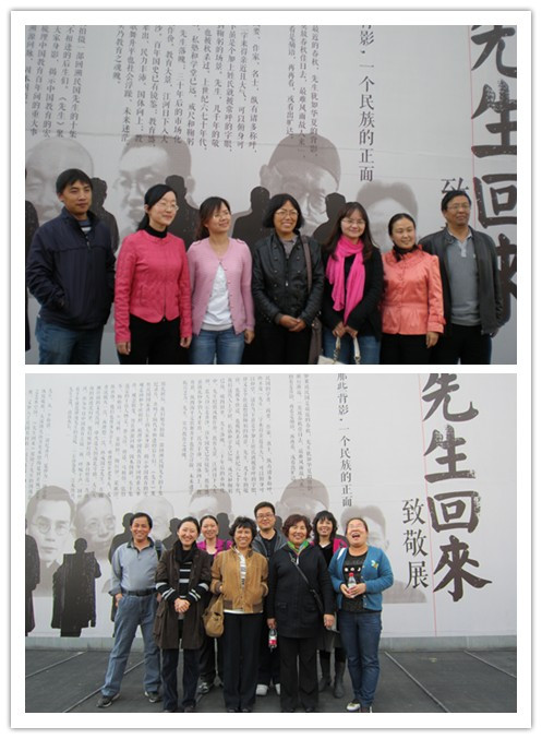 老师们首先参观了圣之空间艺术中心承办的“《先生回来》致敬展”。该展览分为三大部分:一.“先生”部分,展示蔡元培、胡适、马相伯、张伯苓、梅贻琦、竺可桢、晏阳初、陶行知、梁漱溟、陈寅恪等10位民国先生的生活照片、手书真迹,并辅以《先生》纪录片影像在展厅滚动播出;二.“故纸温暖”部分,展示民国书籍封面、海报等当年文化出版之色彩;三.“老课本”部分,展示系列民国小学课本,聚焦课文和现代解读,童趣盎然。