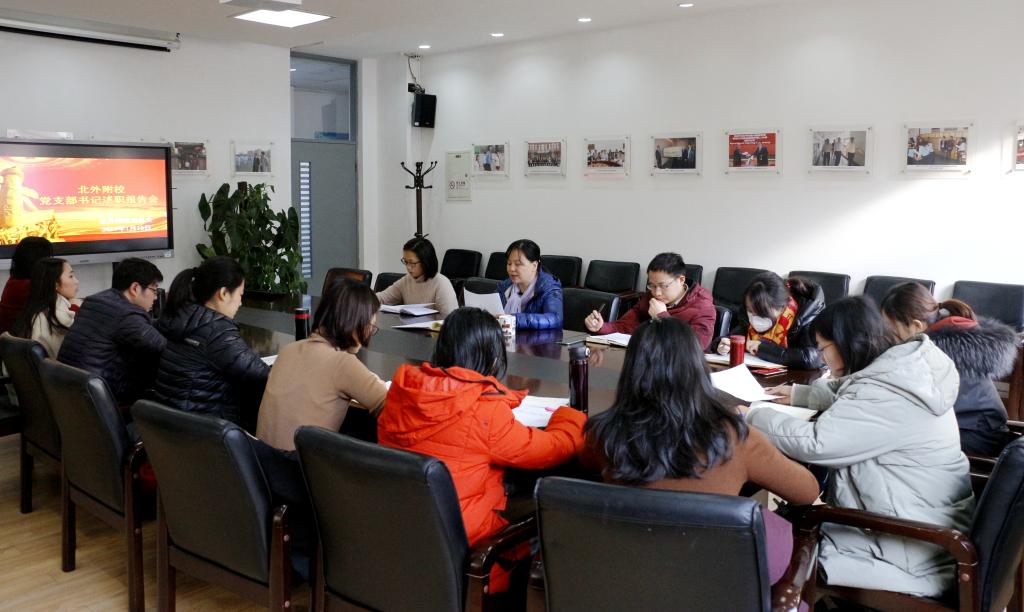 综合支部书记杨巍从个人履职方面进行述职,她坚持学习理论知识,做好上传下达工作,把发展党员工作放在首位,坚持参加清河学区及北外开展的党建活动,杨巍还分享了下一年打造学习型支部的计划。