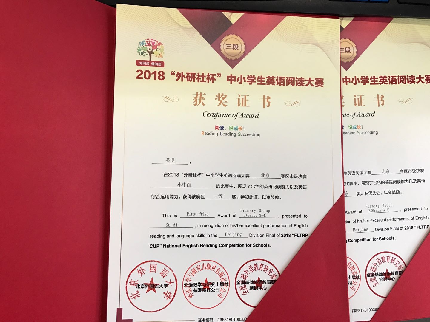 在2018“外研社杯”中小学英语阅读大赛北京赛区市级决赛中,我校小学生展现出了出色的英语阅读能力以及英语综合运用能力,