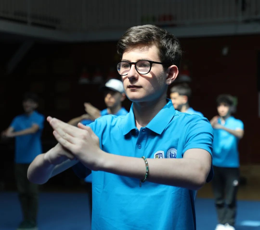 为了让罗马国立住读学校师生更加深入地了解校园文化,北外附校精心组织了丰富多彩的体验活动。在武术课上,同学们一招一式,有模有样,从起手式抱拳礼的谦和仪态,到五步拳的刚健迅猛,每个招式皆精准到位,一气呵成。在知识竞赛现场,罗马国立住读学校同学们与1+3项目2班复语学生组成跨文明智库,在环形讨论区里碰撞出正确的答案。在毛毛虫比赛现场,中意四组混编制前进,彩色的毛毛虫道具在赛道上快速移动。在体育馆,罗马国立住读学校同学们还与我校小学生进行了羽毛球友谊赛。