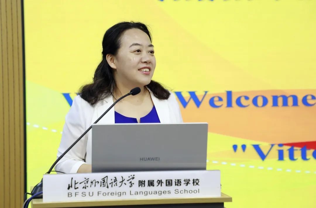 欢迎仪式上,马晓燕对意大利罗马国立住读学校师生的到访表示热烈欢迎,并从北外附校历史、办学理念、未来发展等方面介绍了学校的基本情况。她表示,罗马国立住读学校与北京外国语大学已有十余年的深厚友谊,希望北外附校能与罗马国立住读学校以此次交流为契机,进一步加深在教育教学、文化交流等领域的合作。