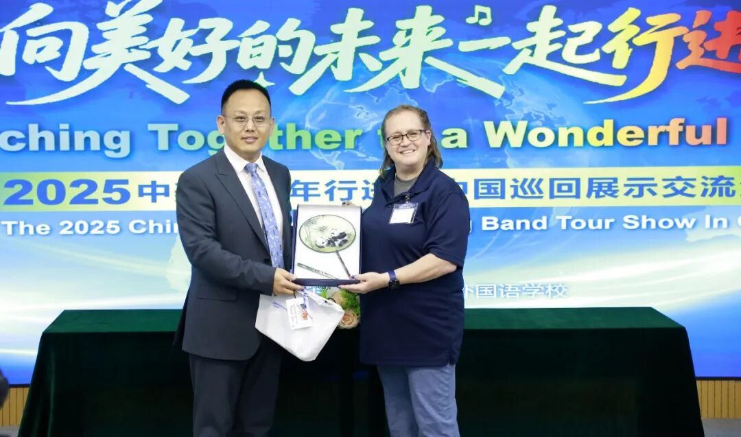 欢迎仪式上,张文超校长与2025年美国青少年行进管乐团组艺术总监迈耶·米歇尔·李(Meyer Michelle Leigh)女士共同签署了合作备忘录,标志着两校友好交流迈出坚实一步。每一个环节都洋溢着真诚与温馨,为未来的持续合作播下希望的种子。
