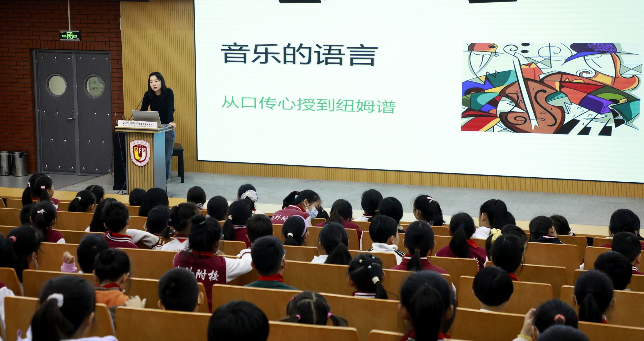 10月29日,北外附校明德大讲堂再度开讲,本期讲堂以“寓‘交’于乐,走进音乐世界”为主题,特邀旅德合唱指挥博士、首都师范大学音乐学院教师姜盼,带领同学们走近交响乐,在讲解与聆听中,初识交响殿堂的奥秘,感受音符跃动间的无穷魅力。