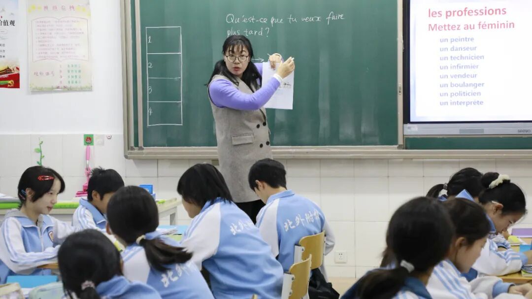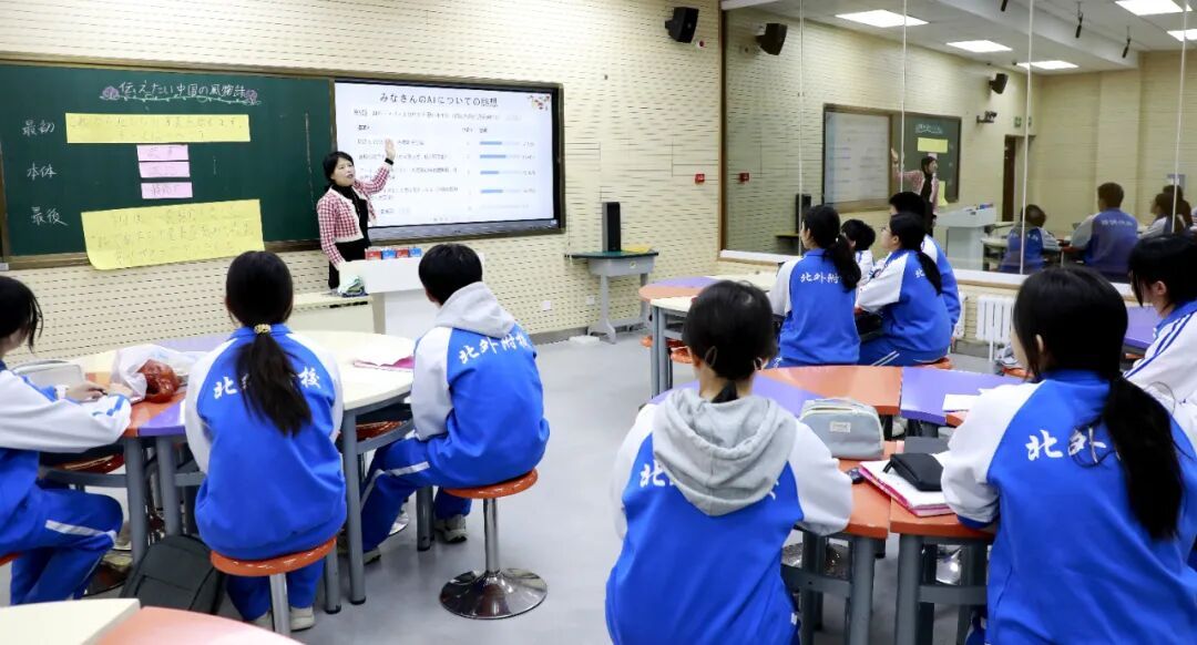 作为本次论坛的重要环节,北外附校五位复语教师分别呈现了深度融合人工智能的观摩课,展现了“技术赋能+情境育人”的课堂新样态。