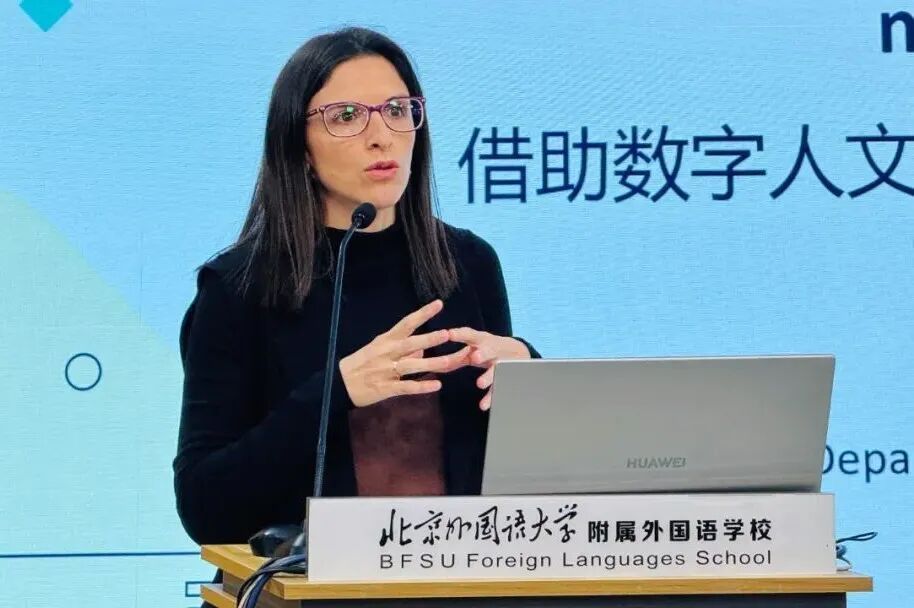 首都师范大学外国语学院副院长廖菡教授分析了我国多语教育的发展历程、区域实践与当前挑战,并倡导建立大中小学师资、资源与数据一体化共建共享机制。北京外国语大学俄语学院副教授奥尔加・尤里耶夫娜・希曼斯卡娅分享了人工智能在对话生成、视觉情景构建、个性化技能训练等方面的应用价值。首都师范大学外国语学院副教授玛丽亚・特雷莎・菲利皮希・门西亚聚焦数字人文与学术写作,介绍了语料库、词云分析等数字工具在教学中的创新应用。