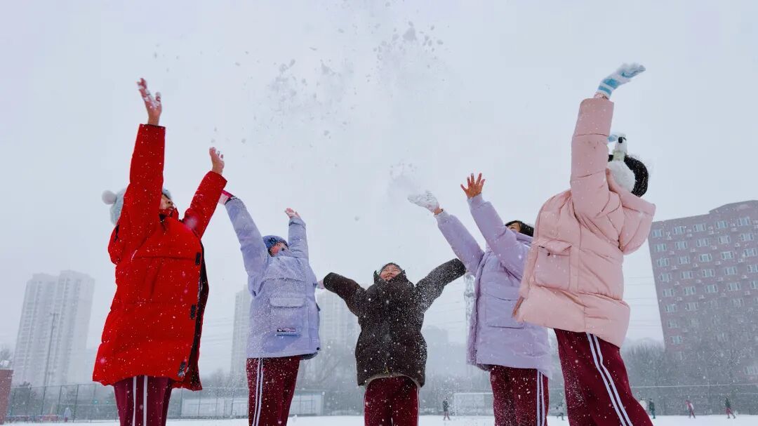 操场上的雪球与欢笑撞个满怀。