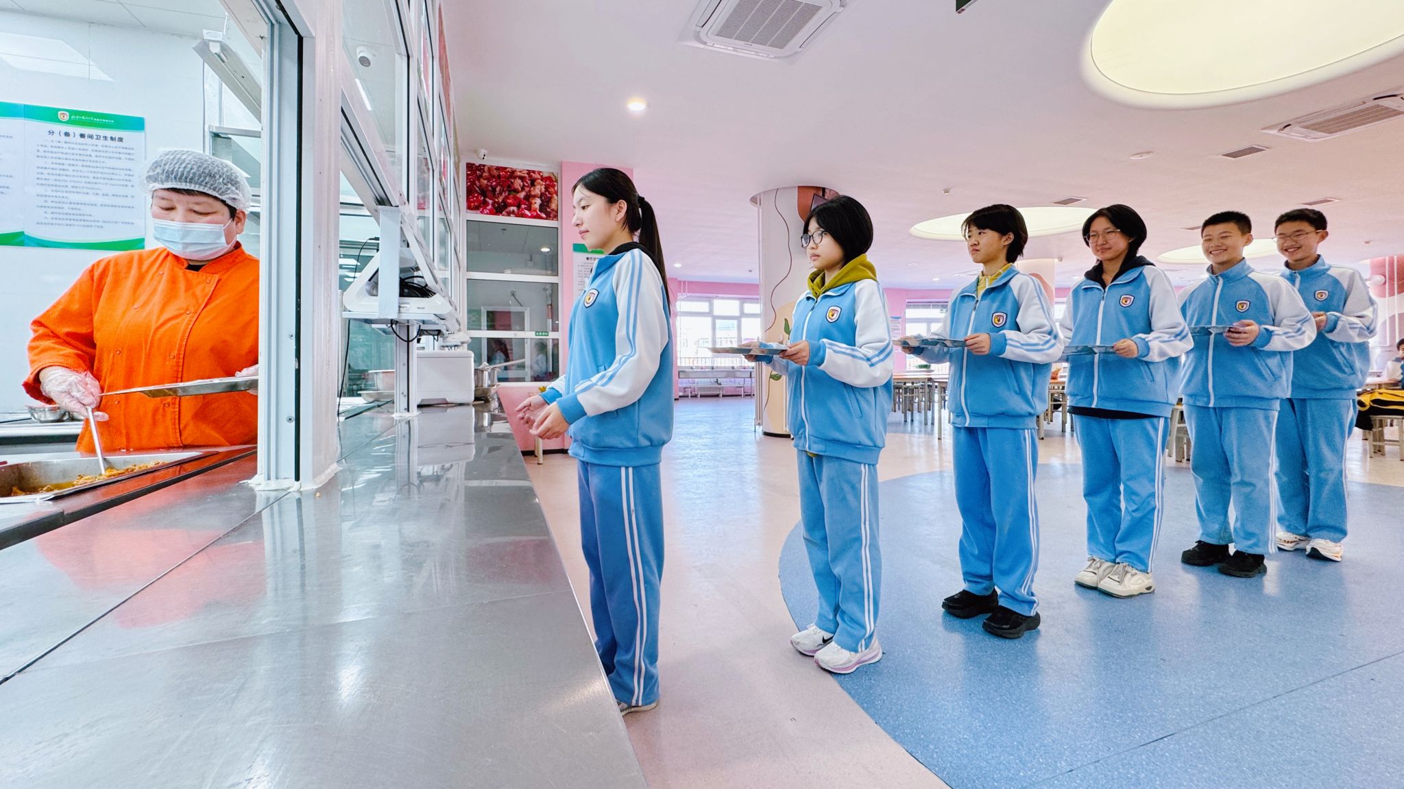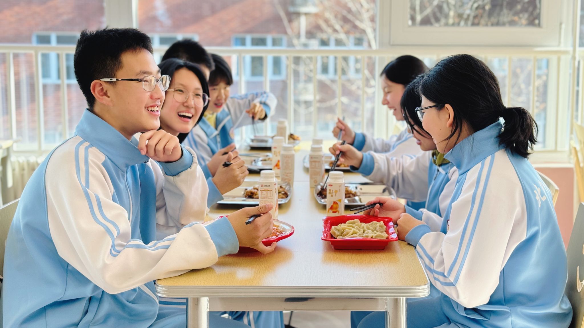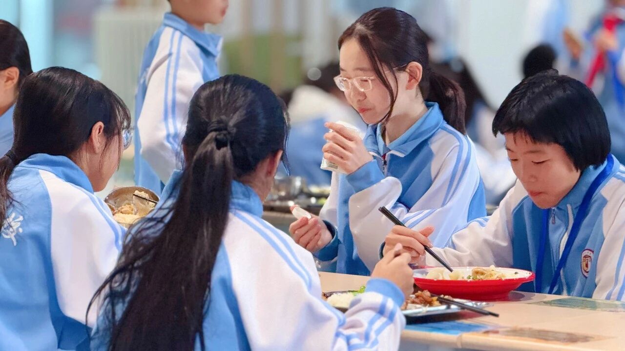 排队的队伍从容有序,少年们脚步轻缓、眼神明亮。取餐时的轻声道谢,礼让时的侧身微笑,让冬日的食堂暖意融融。这是北外附校学子藏在日常里的教养,是刻在一餐一饭中的文明底色。