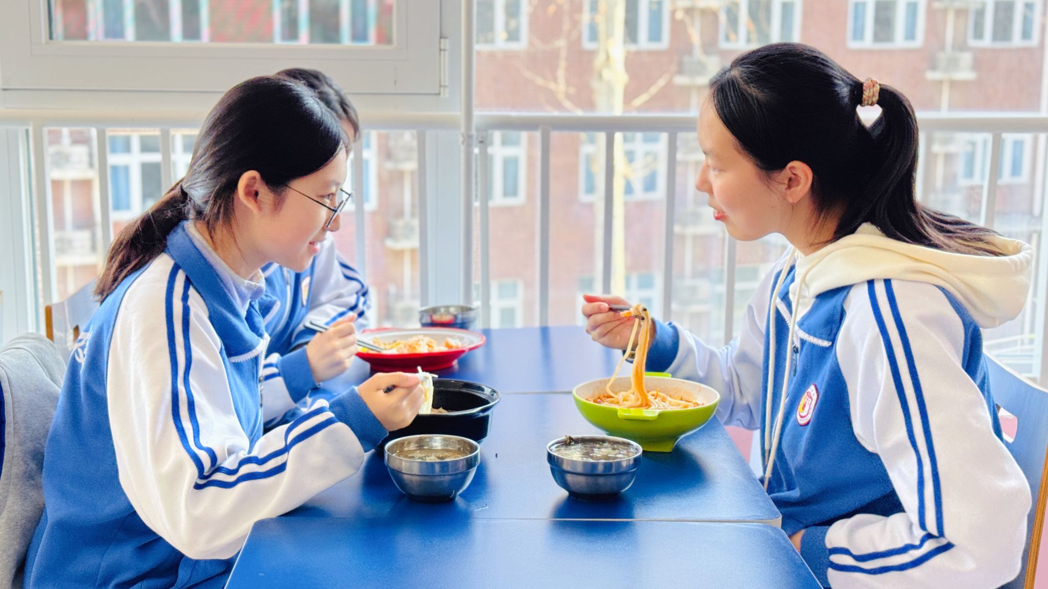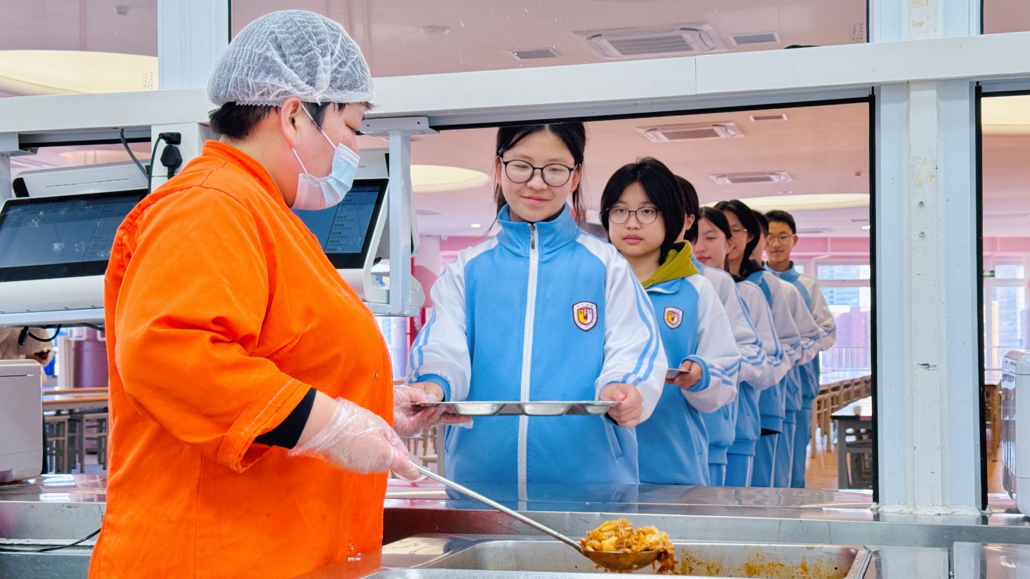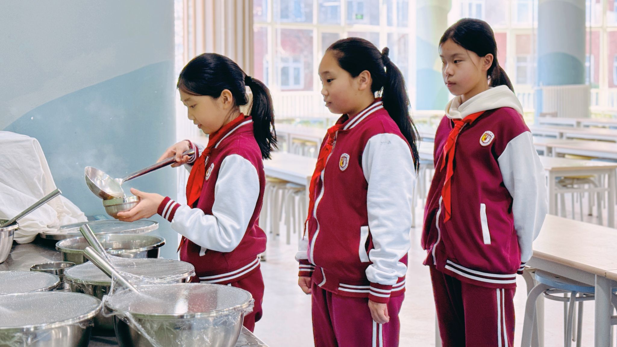 排队的队伍从容有序,少年们脚步轻缓、眼神明亮。取餐时的轻声道谢,礼让时的侧身微笑,让冬日的食堂暖意融融。这是北外附校学子藏在日常里的教养,是刻在一餐一饭中的文明底色。