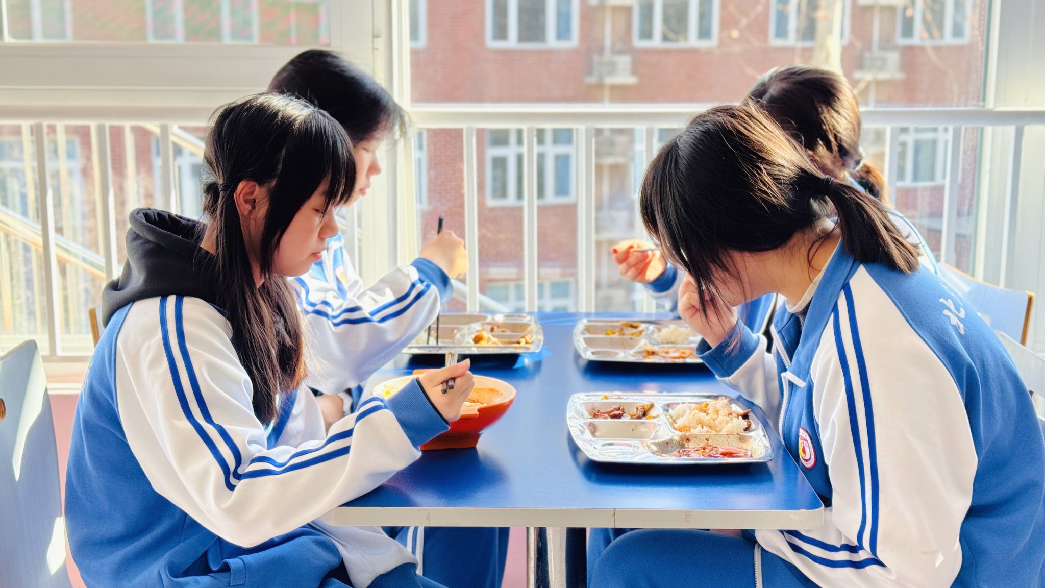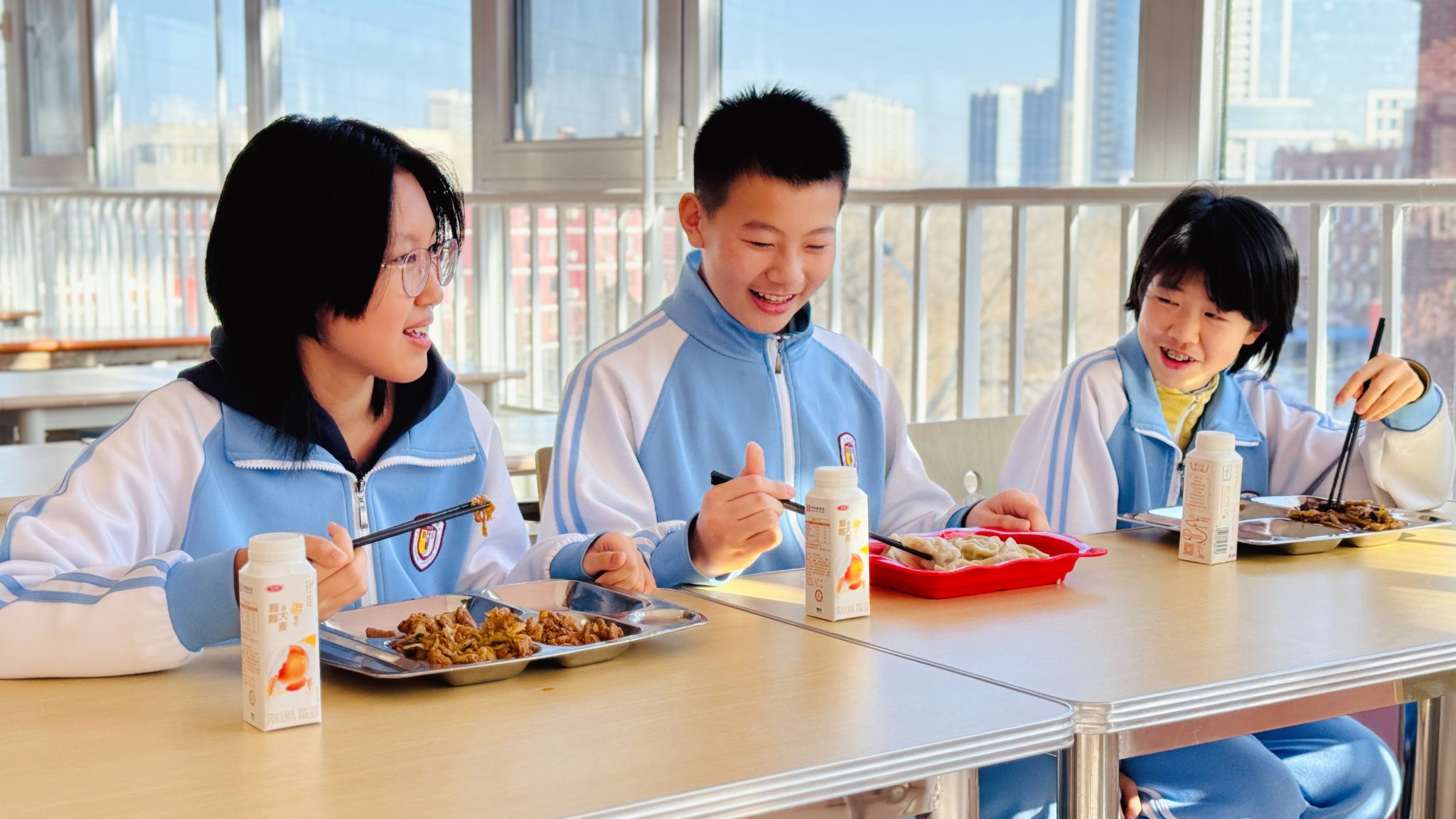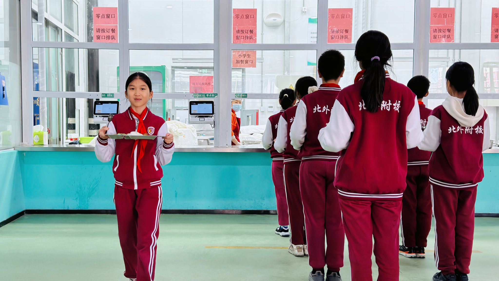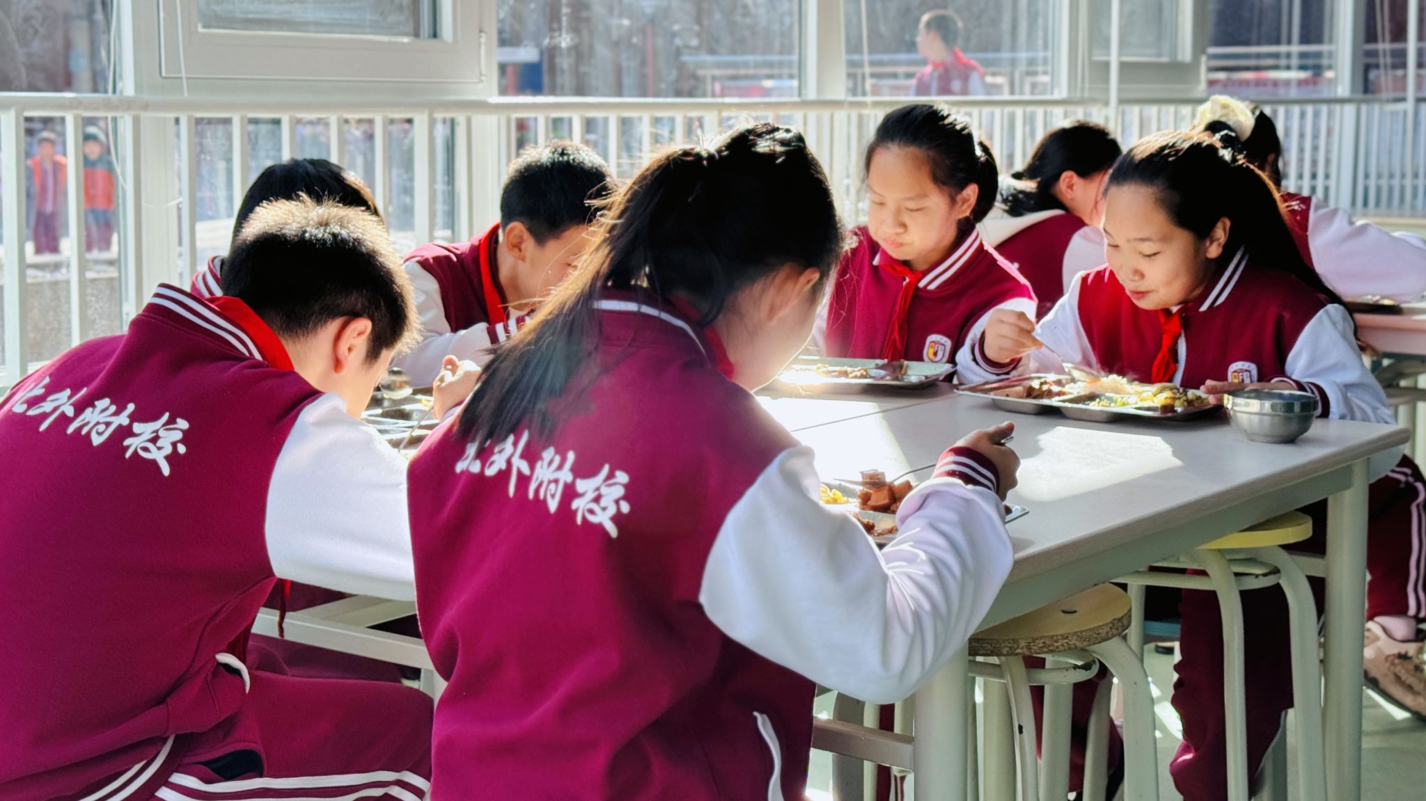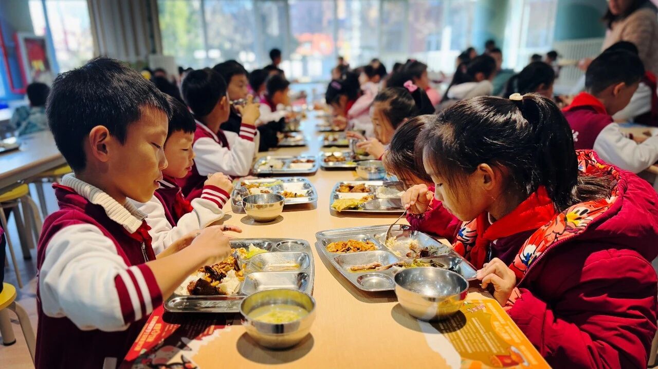阳光漫过食堂的玻璃窗,饭菜的鲜香飘进走廊,热闹里藏着分寸,秩序中裹着暖意。这是北外附校的午餐时刻,也是新年里最鲜活的人间烟火。