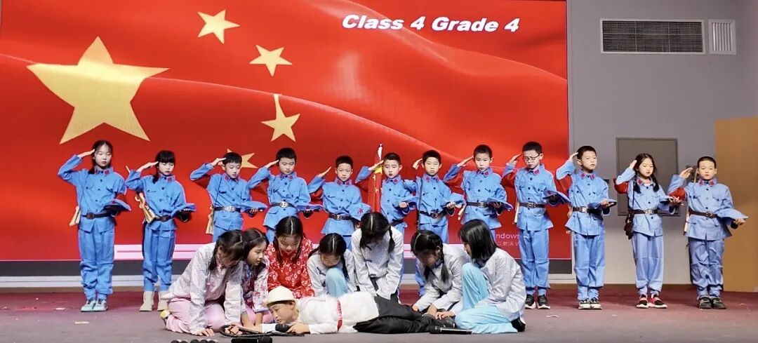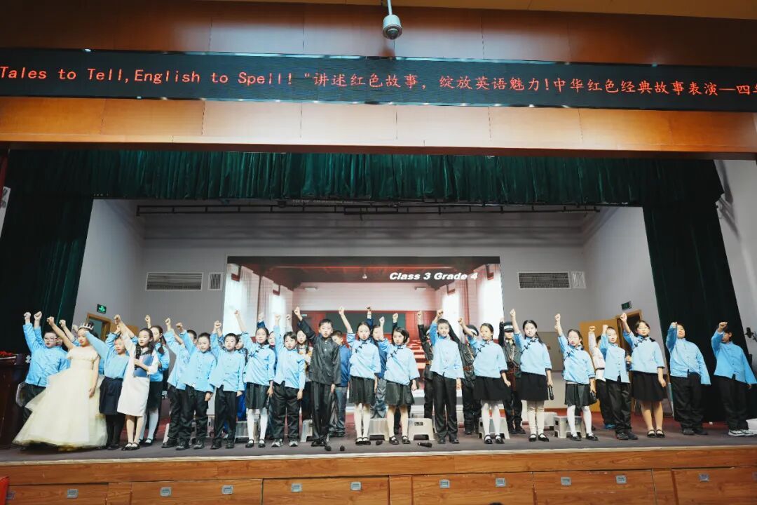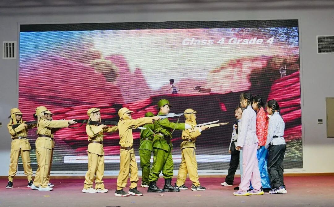“为中华之崛起而读书!”当这句经典台词用流利的英语从学生口中说出时,台下响起了热烈的掌声。这是北外附校四年级英语剧展演的精彩场景,同学们选取“为中华之崛起而读书”“小英雄王二小”等红色经典故事,用双语演绎家国情怀,让红色精神跨越语言界限。