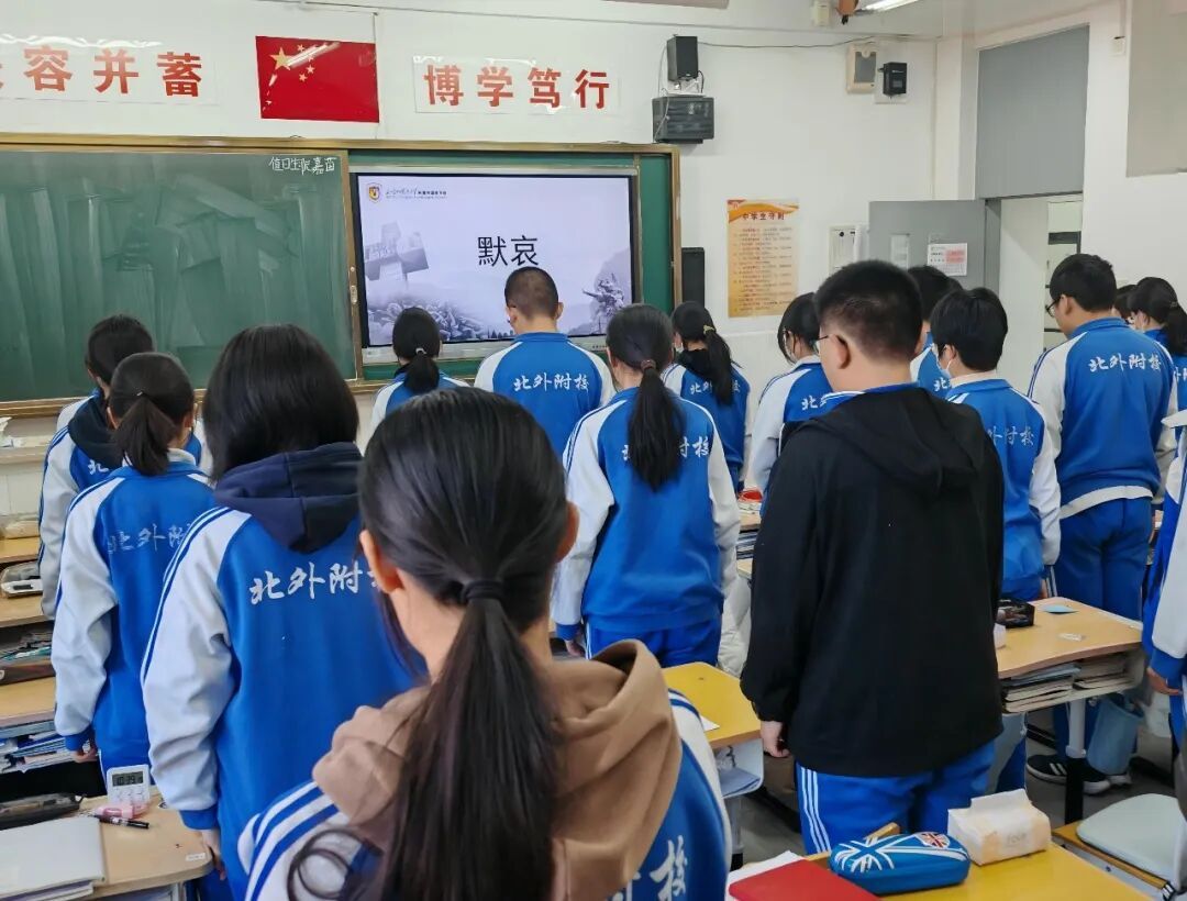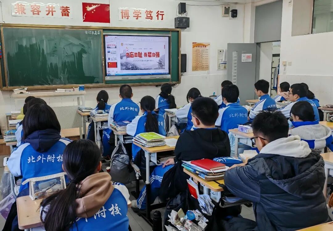 12月13日南京大屠杀死难者国家公祭日前夕,北外附校举行“勿忘国耻,吾辈自强”主题升旗仪式。师生们垂首肃立,在静默中追忆遇难同胞的悲惨遭遇,深刻体会和平生活的来之不易。国旗下的讲话中,学生代表鲁蓝月结合历史史实,讲述了那段山河破碎的苦难岁月,更分享了对“吾辈自强”的深刻理解:“勿忘国耻,是要将过去的苦难刻在心间,明白落后挨打之痛;吾辈自强,则是珍惜当下,以奋斗之姿砥砺前行。”