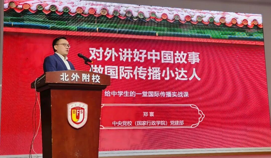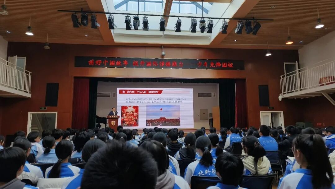 “少年强,则国强;少年进步,则国进步。”作为以外语见长的学校,北外附校学子们更肩负着讲好中国故事,传播中国声音,展现可信、可爱、可敬中国形象的责任。为此,学校特别邀请中央党校(国家行政学院)郑寰教授,为全体入团积极分子带来《对外讲好中国故事,做国际传播小达人》主题讲座。
