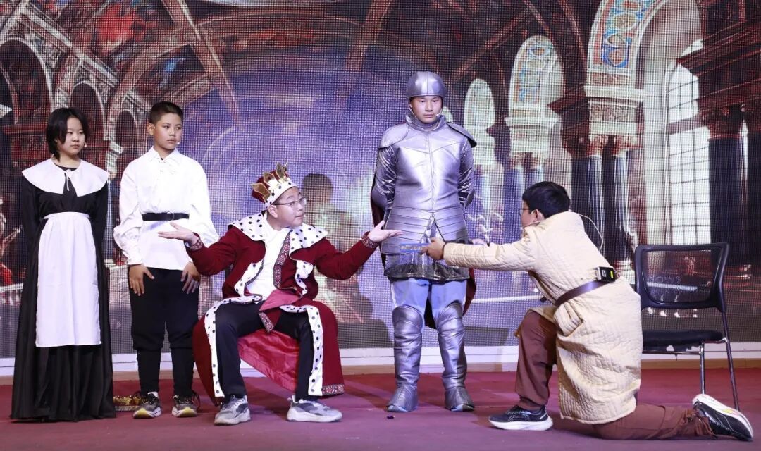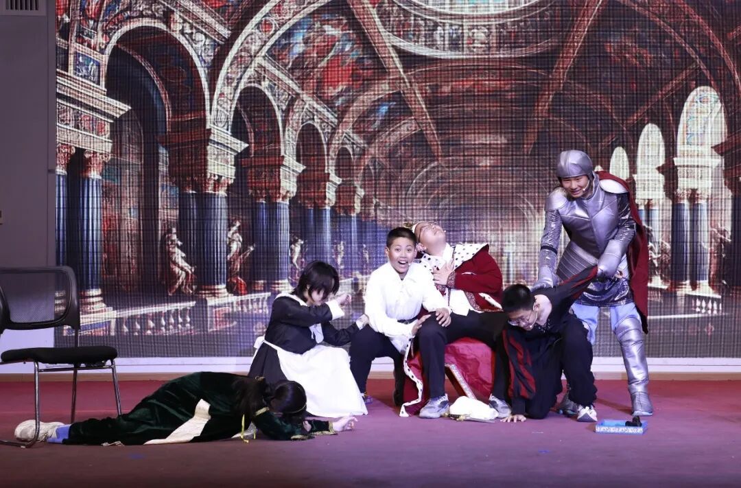 戏剧舞台上,北外附校俄语学子同样大放异彩。俄语戏剧社自主创作并演绎的原创戏剧《重生之我是沙皇——伊凡雷帝》一举夺得2025年北京市第三届“五彩杯”教育戏剧中学组一等奖。作品以历史人物为原型,以“穿越”为创意纽带,构建了跨越时空的思想之旅,展现了学子们在语言运用、艺术创作与团队协作上的综合实力。