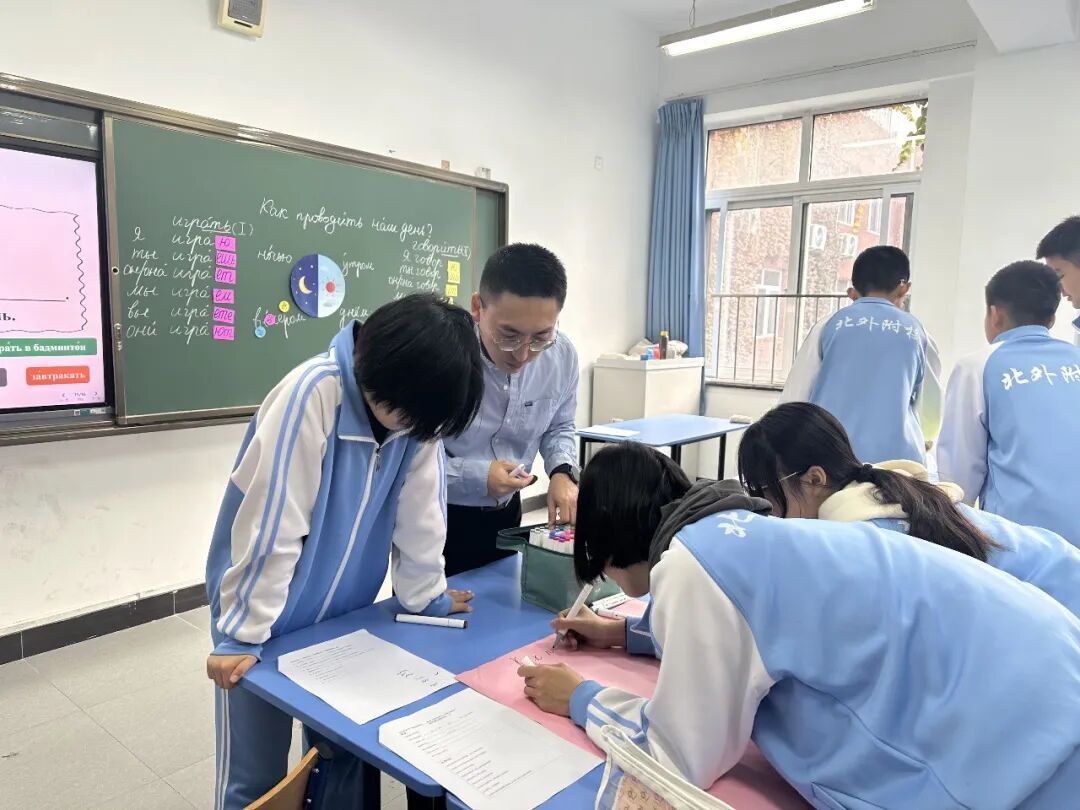 在课程实施层面,北外附校始终坚持“语言能力为本”。复语教研组依托集体备课、定期教研与常态化公开课机制,引入高校专业力量参与课程共建。北京外国语大学俄语学院、海淀区教育科学研究院专家及多校俄语教师参与教学研讨,持续推动课堂在情境建构、语法运用与能力迁移方面优化。这种以高效课堂为核心、以教研机制为保障的教学模式,为学子在高要求赛事中稳定输出、从容应对提供了坚实支撑。