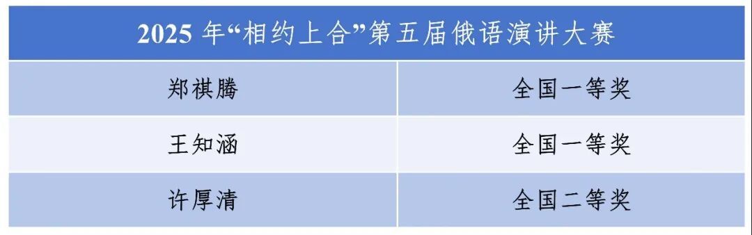 在2025年“相约上合”第五届俄语演讲大赛中,北外附校俄语学子传来捷报。高三(2)班郑祺腾、初二(11)班王知涵与许厚清三位同学,在全国98所中学、1323名选手的激烈角逐中脱颖而出,最终两人荣获全国一等奖,一人获全国二等奖。值得一提的是,这已是北外附校连续两年在该项赛事中摘得金奖。与此同时,在刚刚揭晓的2025年俄语奖学金项目遴选中,郑祺腾同学位列全国第14名,荣获二等奖。