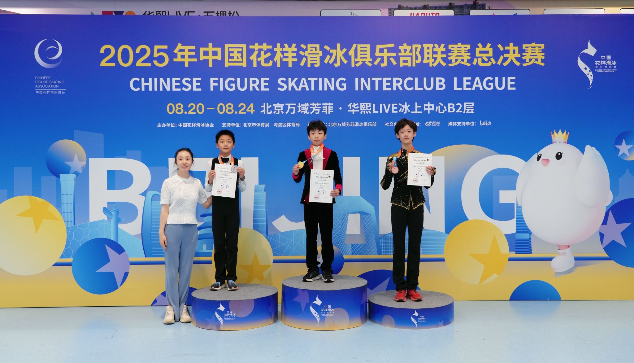 初一年级万澄轩同学在冰面上演绎着速度与美感的完美融合。在 2025 年中国花样滑冰俱乐部联赛总决赛中,他一举斩获精英男子单人滑少年中龄组冠军与低龄组亚军;随后在北京市花样滑冰冠军赛中,再获少年甲组男子单人滑第三名的佳绩,实现竞技水平的跨越式提升,用流畅的滑行与精准的动作诠释着对冰雪运动的热爱。