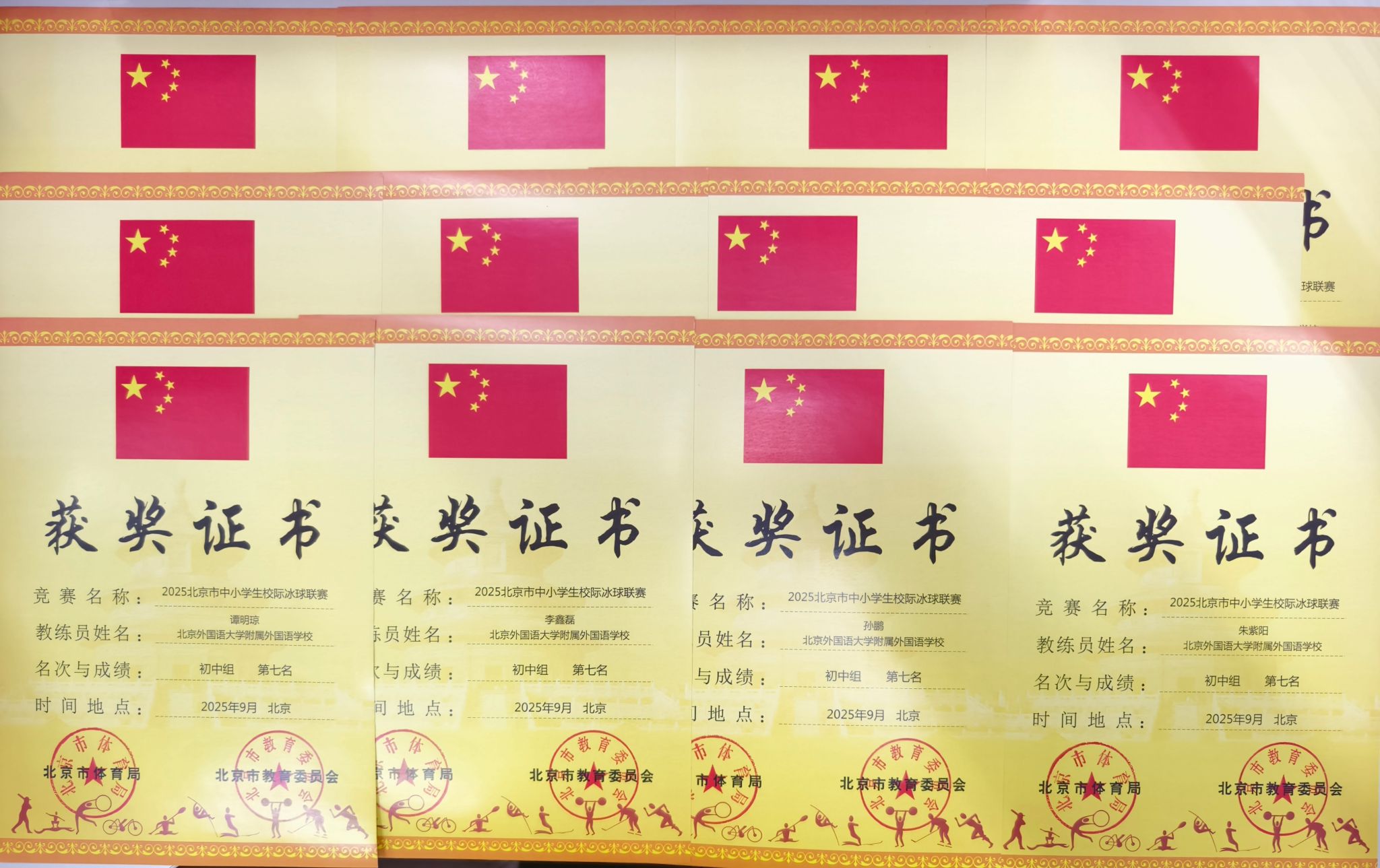 2025 年北京市中小学生校际冰球联赛中,北外附校各年龄段梯队全面发力、多点丰收,彰显了完善的人才培养体系成效: