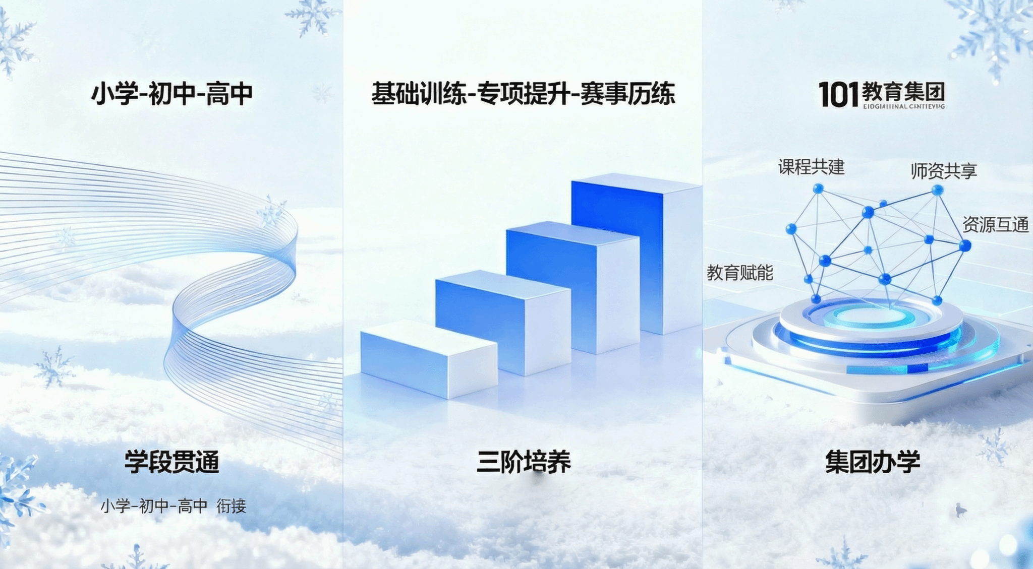 辉煌成绩的背后,是北外附校多年来精心构建的“小学-初中-高中”一体化冰雪课程体系与“基础训练+专项提升+赛事历练”三阶培养模式的坚实支撑,也是101教育集团化办学资源共享优势互补的最新成果。学校通过引入专业教练团队、科学统筹学训安排、深化家校协同育人、塑造团队文化等举措,确保学生“训练不偏科、学业不掉队”,在提升竞技水平的同时,全面培育坚韧品格、团队精神与责任担当。姬奕彤、宋浩旗、万澄轩等同学的卓越表现,以及各梯队在各级赛事中的全面突破,正是学校体教融合育人模式成功实践的生动缩影。