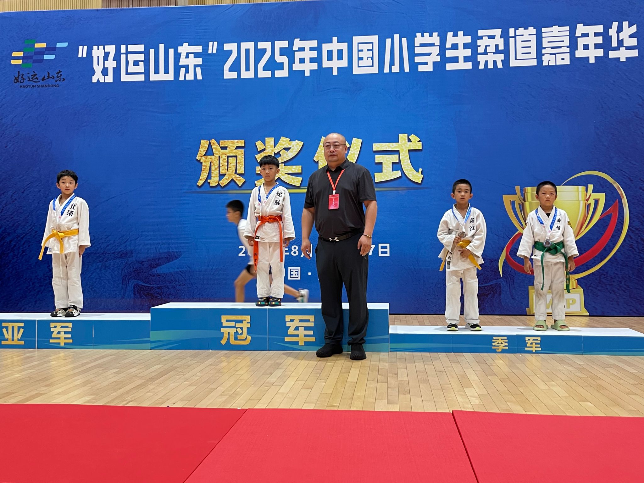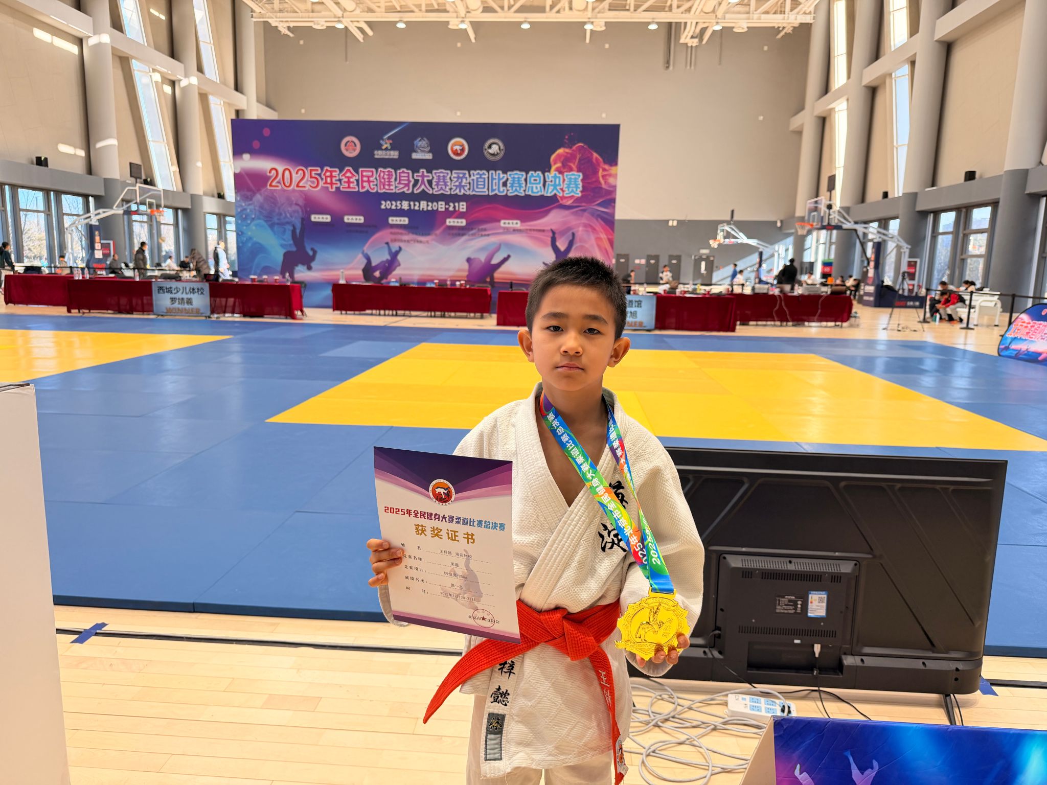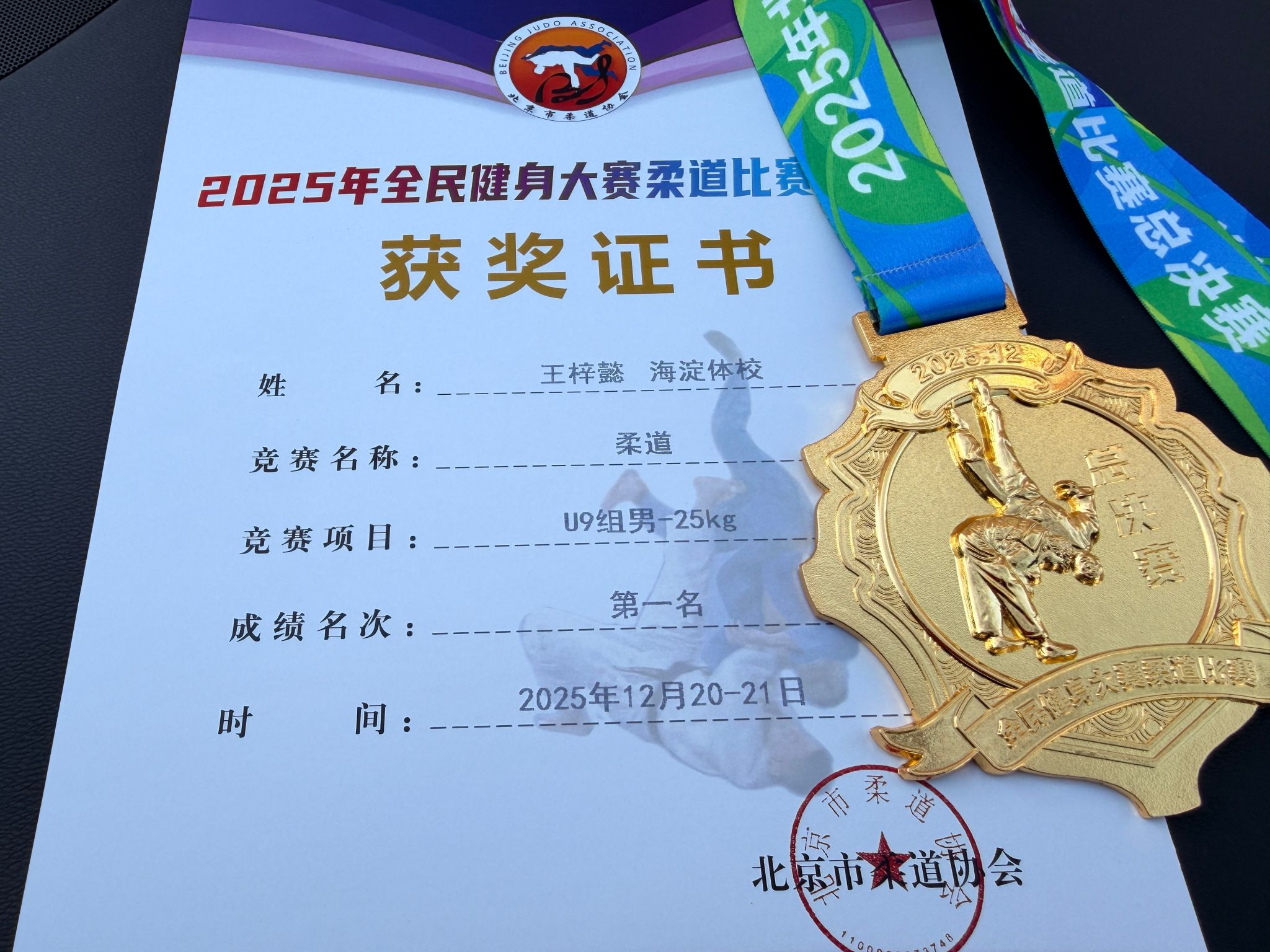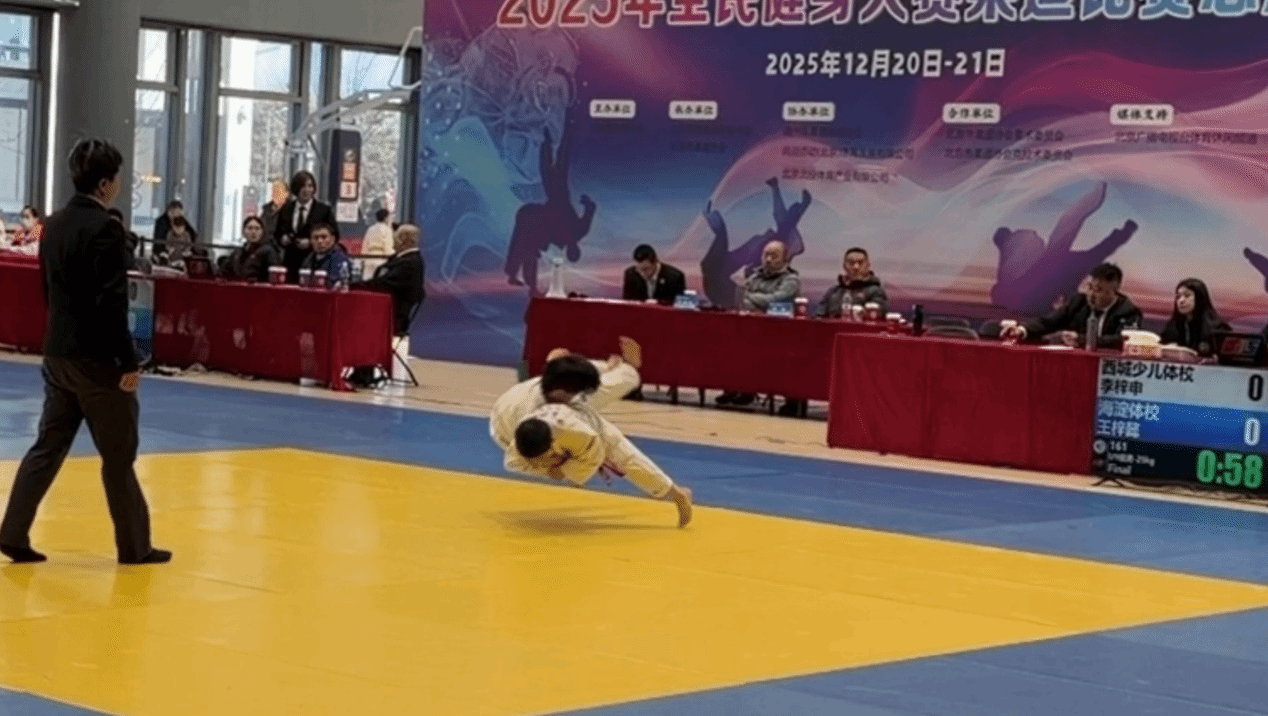 2025年12月20日—21日,2025年北京市全民健身大赛柔道比赛总决赛在北京精彩开赛。北外附校柔道队王梓懿同学凭借精湛的技法、顽强的拼搏精神勇夺U9组男子-25kg级别的冠军,摘得一枚市级大赛金牌,这也是北外附校柔道队自成立以来获得的首枚市级金牌。
