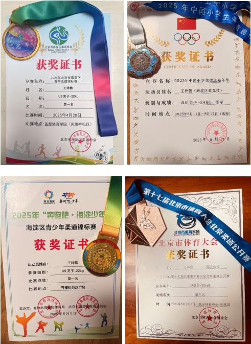 作为北外附校柔道队的一员,王梓懿同学的成长与成绩有目共睹。过去一年中,他稳步提升、屡获佳绩:4月荣获海淀区春季锦标赛冠军,8月荣获全国中小学生柔道嘉年华季军,10月先后夺得海淀区柔道公开赛冠军及北京市体育大会柔道柔术公开赛季军。这些荣誉清晰展现了他的成长轨迹,也彰显了北外附学子顽强拼搏、勇于争先的精神风貌。赵睿峰教练表示,王梓懿的成功源于其日复一日的踏实训练和永不放弃的意志品质,这也是学校柔道队整体训练风格的缩影。
