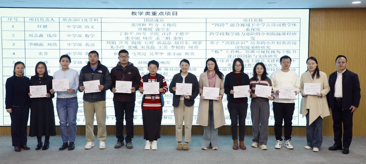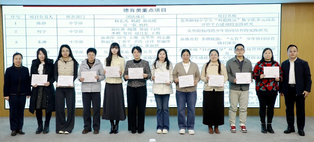 会上还公布了2026年度北外附校教育教学改革重点项目,张文超、张继军为项目负责教师颁发立项证书。