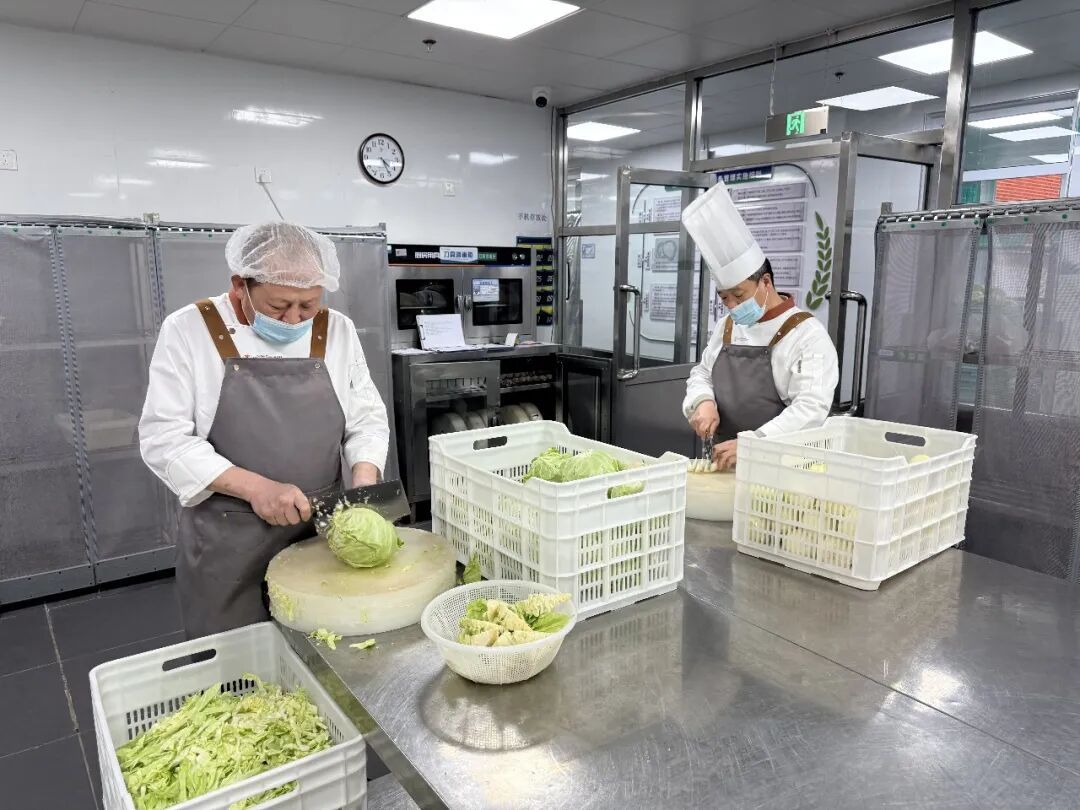 北外附校的食堂里没有“加热即食”,只有新鲜烹制的锅气与温度。食堂始终坚持现炒先做,从进货验货、择菜洗菜,到切配烹饪、分餐上桌,每一步都看得见。孩子们吃到的每一口饭菜,都是热腾腾、香喷喷的新鲜滋味。