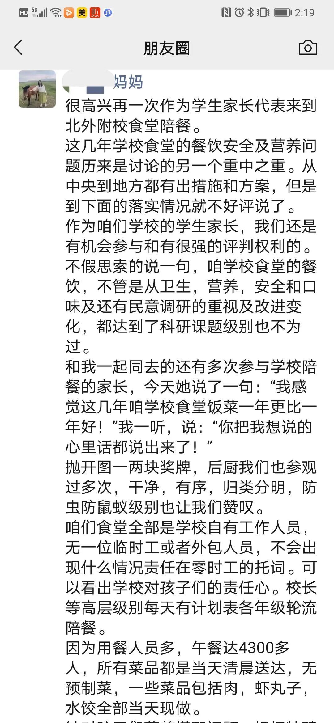 五年级周同学的家长对用餐秩序印象深刻:“无人插队、吵闹,三两好友坐在一起,一边聊天一边吃饭,吃完又一起把餐盘分类回收,良好的素质早已成为了自然的习惯。”初一年级肖同学的家长对食堂的管理给予高度肯定:“作为家长,把孩子交给这样用心负责的食堂,感到很放心。”