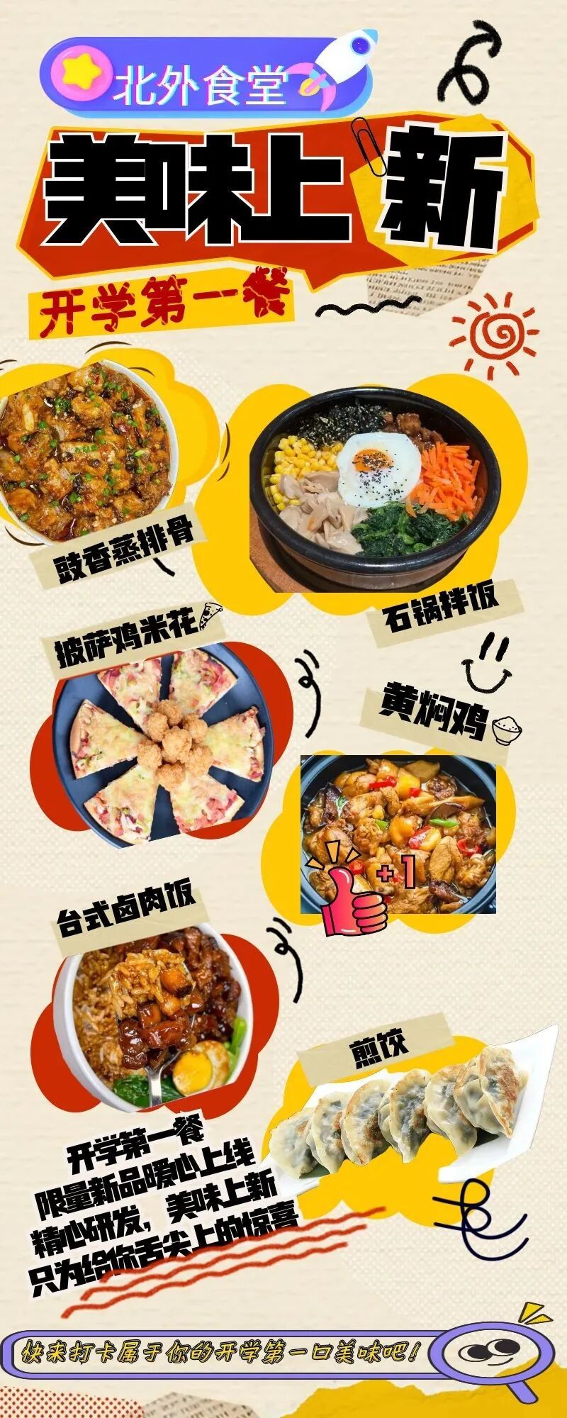 中学菜单匹配新陈代谢旺盛、学业高消耗,升级“高能营养+丰富口味”,特色风味主食搭配高蛋白、补铁红肉,增设披萨、水饺等花式美味,让干饭不单调,充电更高效。
