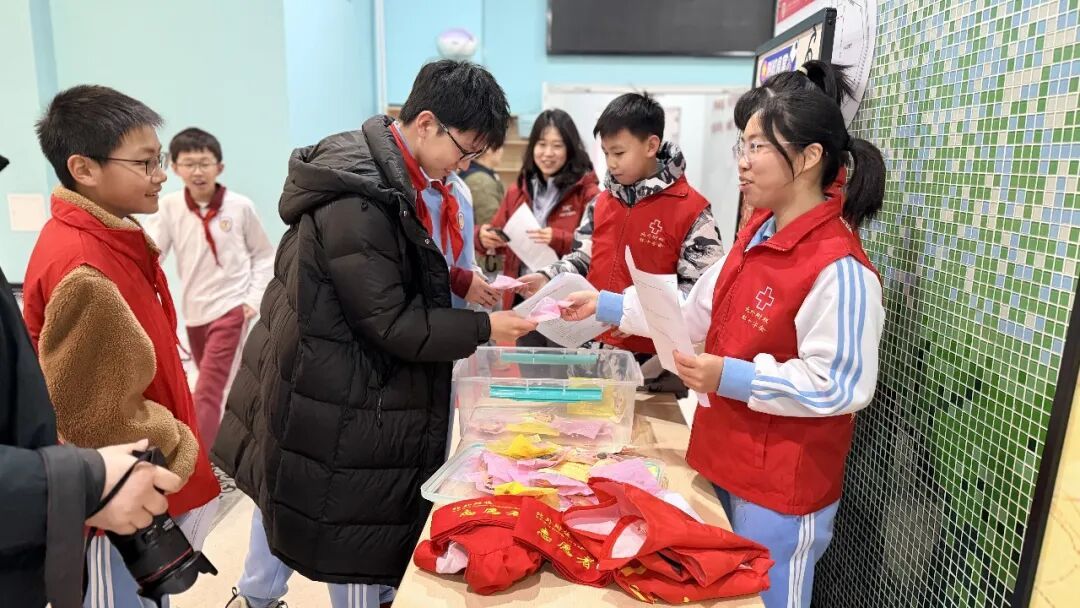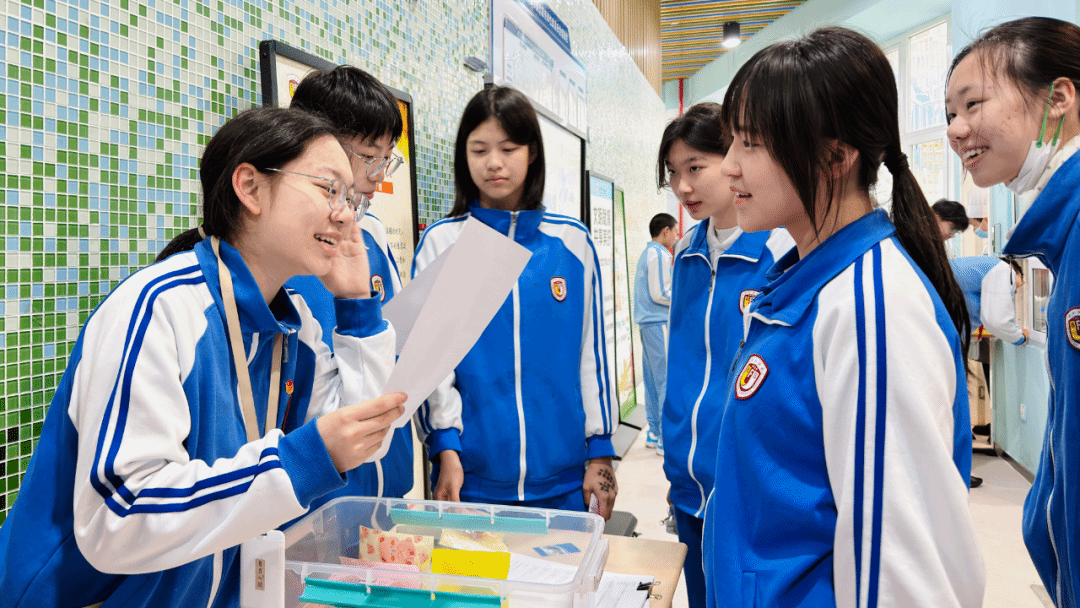 食堂一层大厅摆满珍惜粮食、文明就餐的趣味展板,学生膳食委员和团委志愿者现场开展营养健康知识问答,答对题目就能解锁“北外附校”牌小甜点,在轻松互动中解锁科学干饭小知识。