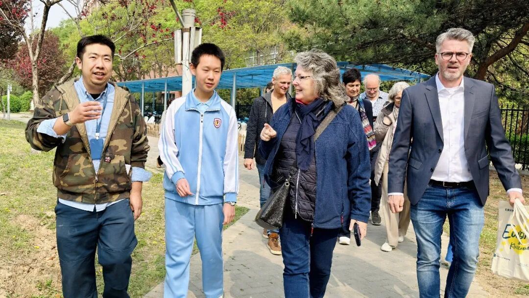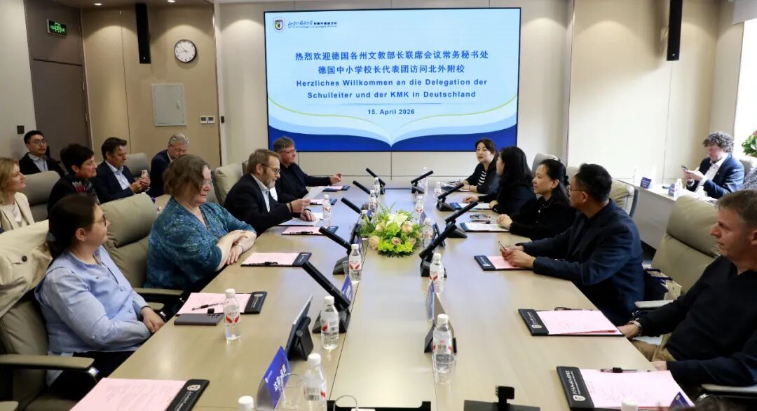 2026年4月15日上午,德国各州文教部长联席会议(KMK)教育交流中心主任格诺特·施蒂维茨(Gernot Stiwitz)率KMK中小学校长代表团一行29人到访北外附校。北外附校党总支书记张继军、副校长马晓燕和德语组师生代表参加交流活动。