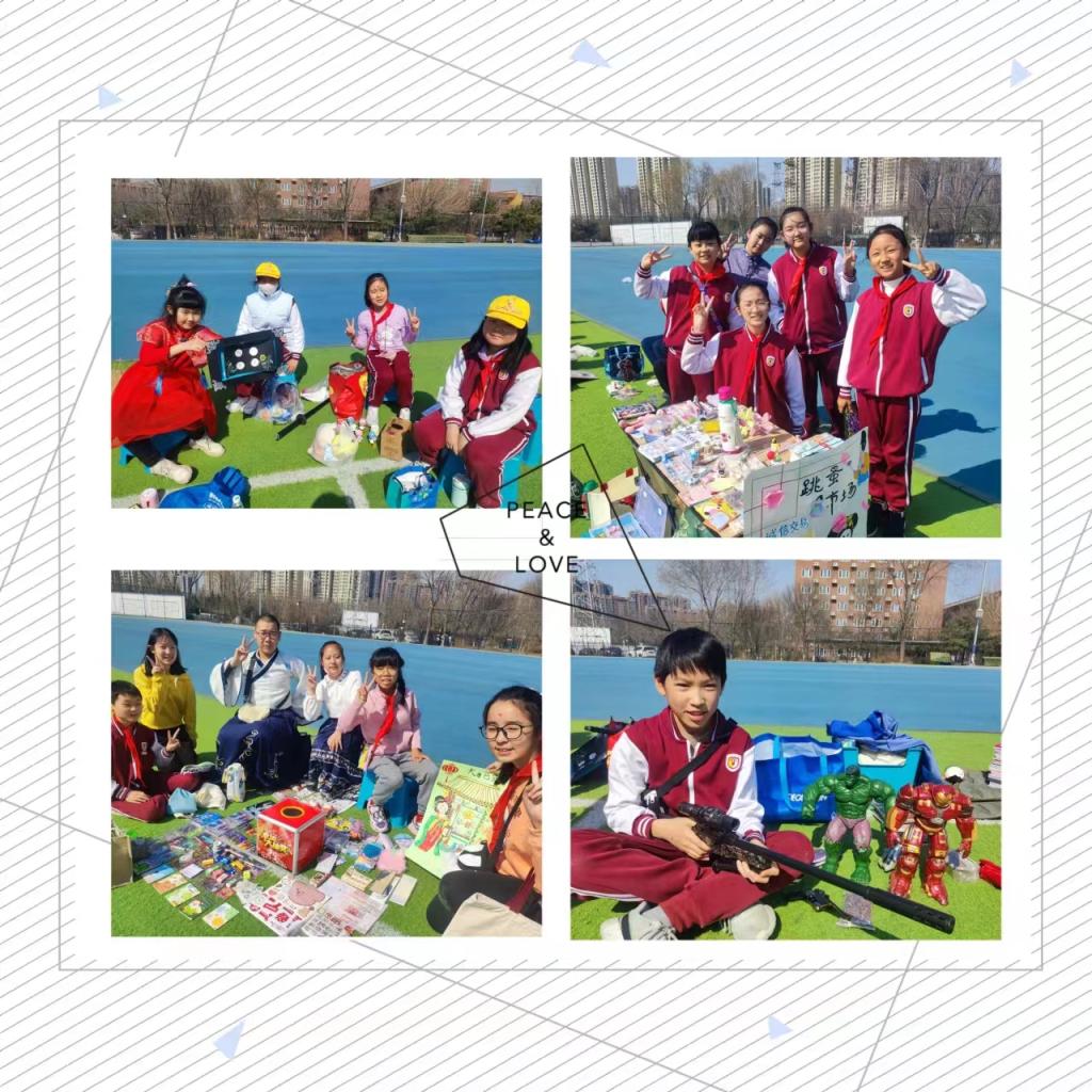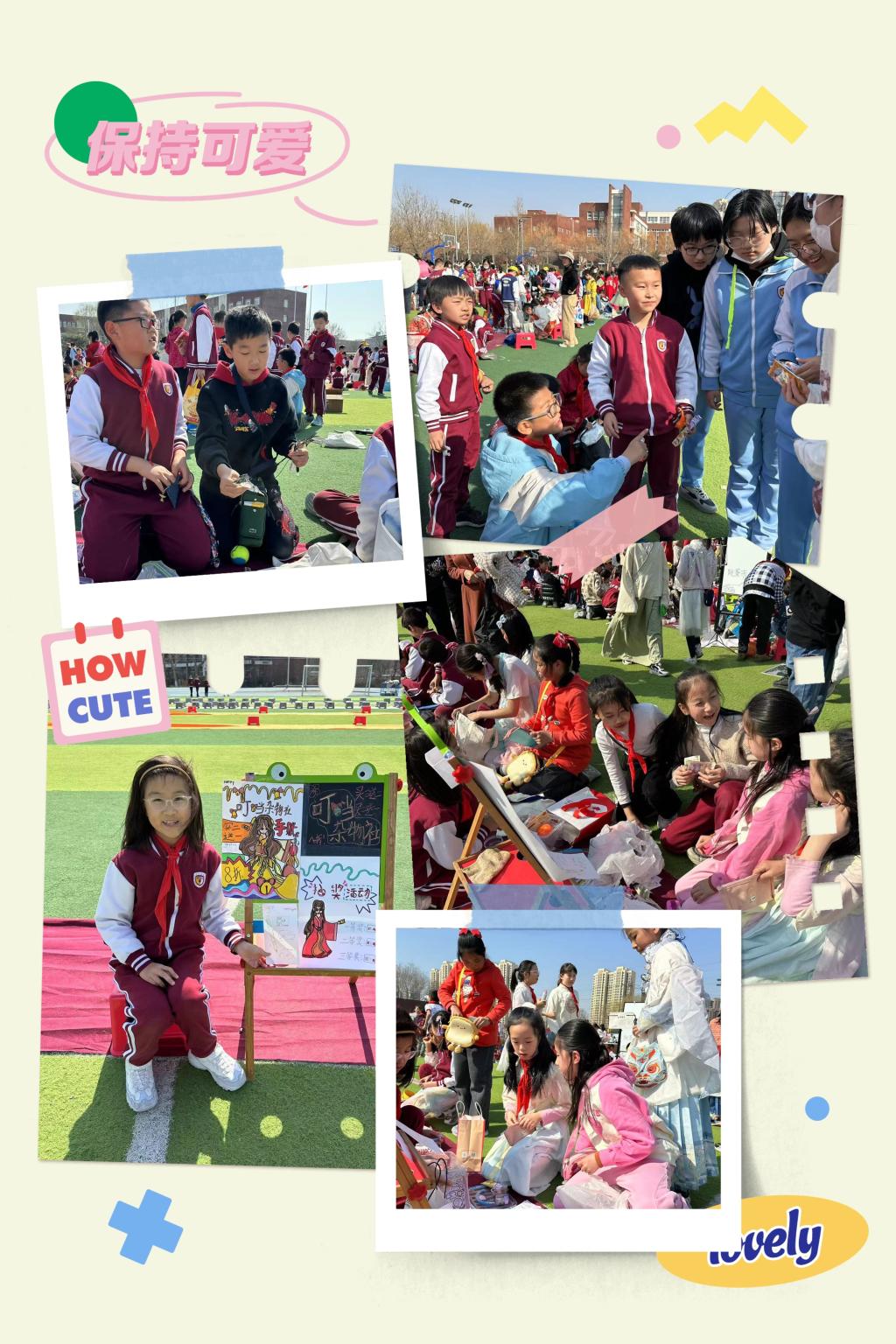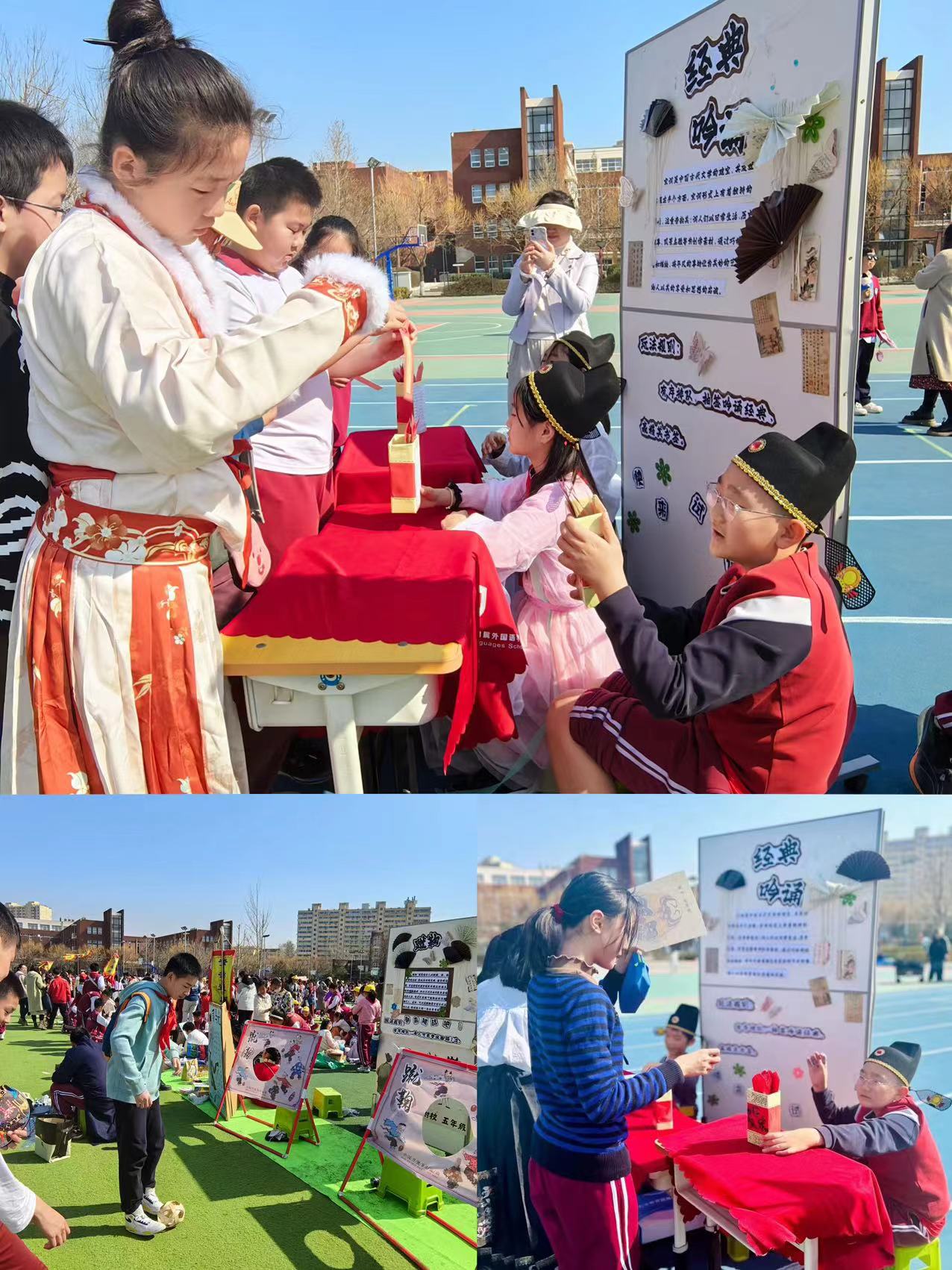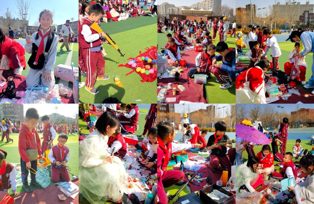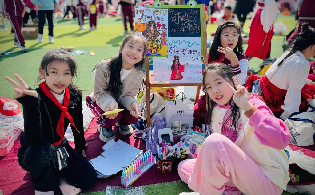 π节当日,一场别出心裁的国潮市集跳蚤市场活动在北外附校操场热闹开市。“5、4、3、2、1,咣----”在同学们的欢呼声中,课程教学中心主任王静敲响了跳蚤市场的铜锣,“国潮市集”开集啦!整个市场沸腾起来。活动现场人头攒动,热闹非凡。丰富的书籍、新奇的玩具、漂亮的饰品、实用的学习用品……应有尽有。身着汉服的小客人穿梭于各个摊点间,挑选着自己心仪的物品,小摊主们做起生意来有模有样,他们用满腔的热情服务着每一位“顾客”,并用在课堂上学到的数学知识与他们“讨价还价”。摊主们想尽一切办法推销商品,有的“主动推销”,有的“捆绑销售”,有的“买物赠礼”,还有的做起了“流动商贩”,开始了“沿街售卖”……热闹的跳蚤市场,响亮的吆喝声、创意十足的宣传画、喧闹的询价声,响成一片。此次国潮市集设计了汉、魏晋、唐、宋、明、清六个主题朝代,从国风服饰到国风宣传海报,从国潮特色摊位到传统文化展示活动,处处彰显了传统文化与现代元素的巧妙结合。