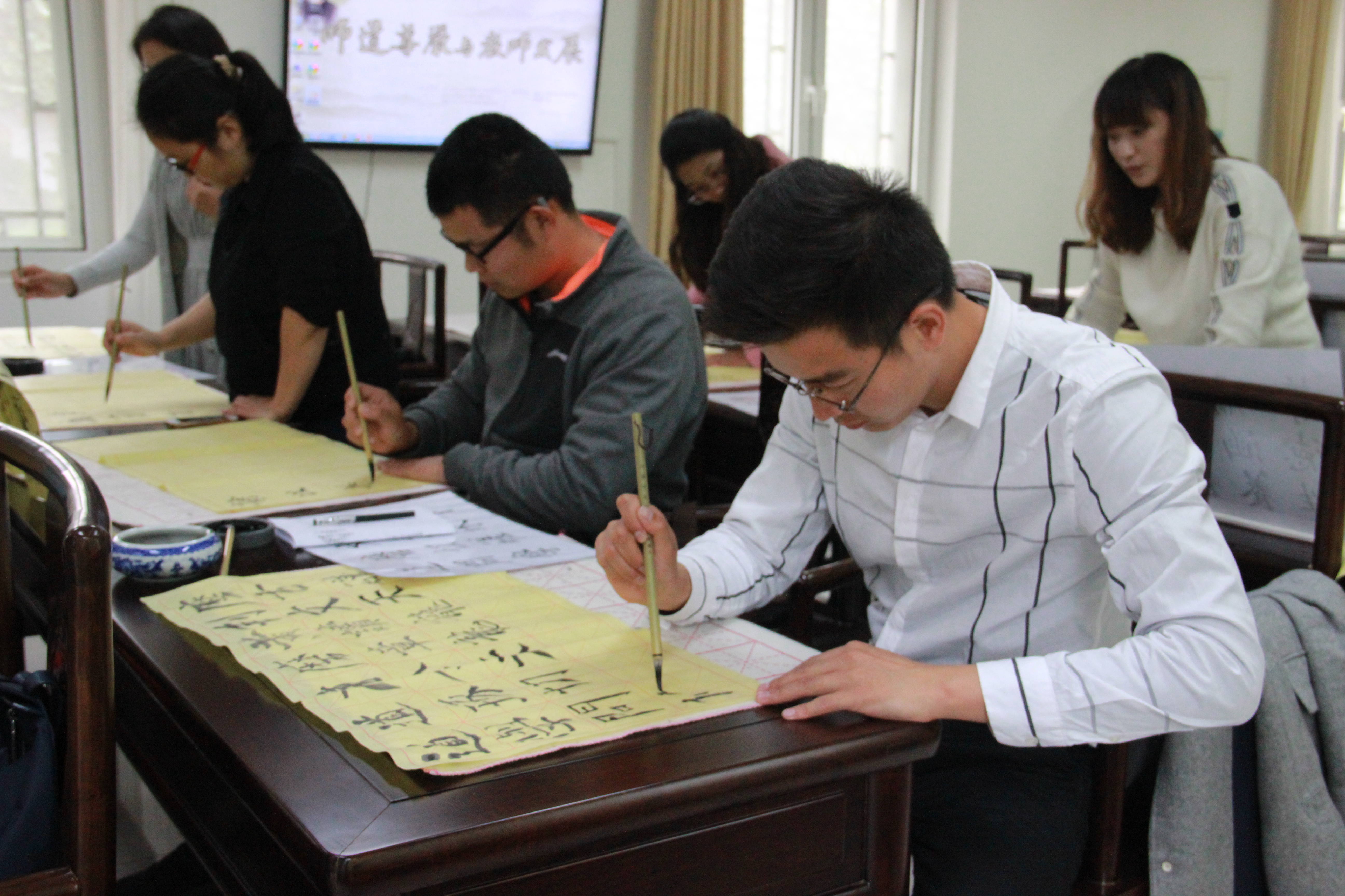 专题讲座后,老师们观摩了敬德书院的正心堂、诚意堂、至圣堂、格物斋、致知斋、翰墨斋、德音斋、中和堂、琴艺馆等中华文化学习功能厅,进行了诵读经典、静听古韵赏琴曲、泼墨挥毫研习书法、亲身实践展示茶艺等活动,在古色古香的书院建筑群内,切身体验和感受中华传统文化的博大精深。