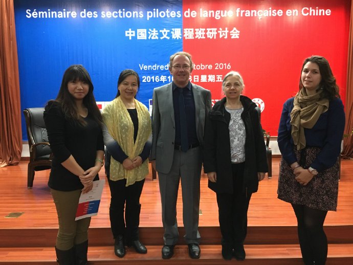 我校于2014年被法国使馆、中法教育部确定为“法文课程班”项目8所试点学校之一。此次研讨会既为法语课程发展与推广搭建了良好平台,也加强了与法国教育部、法国驻华大使馆及中法各校之间的友好交流,对我校的项目发展起到了促进作用。