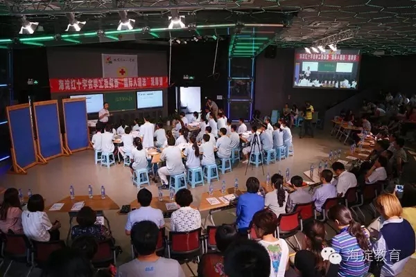 在“红十字生命教育展室”里,我校三位老师作为海淀区首批红十字教师见习急救师资对学生进行了急救辅导。我校也将在本学期期末筹建红十字培训站,并就帮助学生了解急救知识、探索人道法课程、成立学校急救队等活动进行安排。