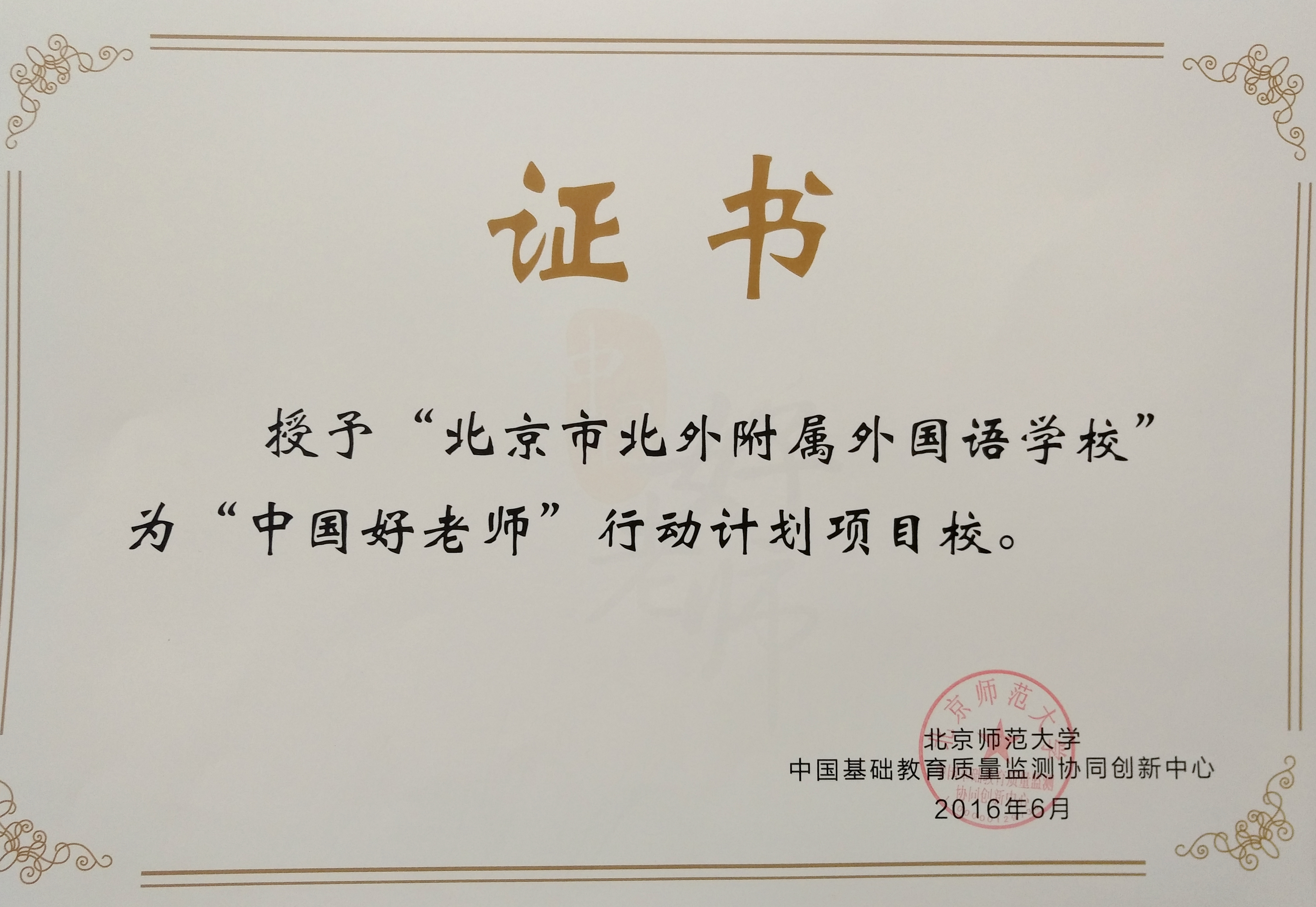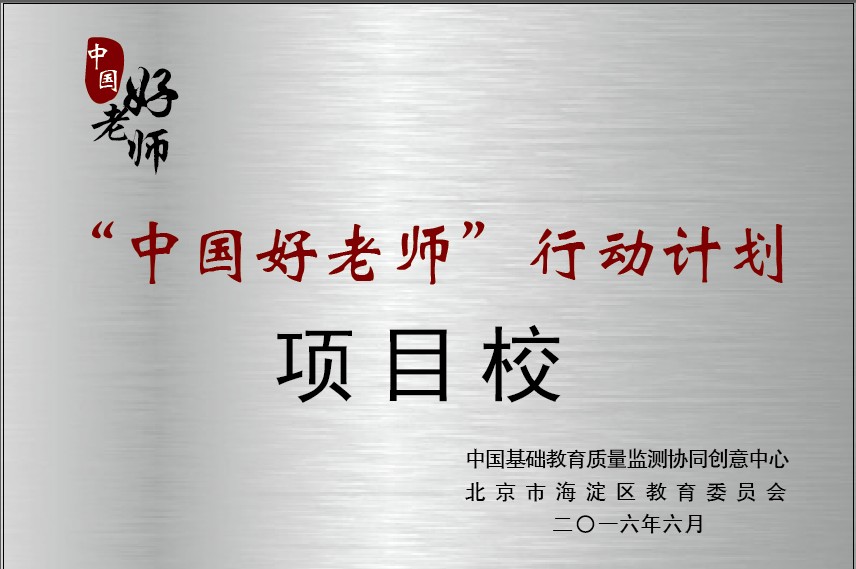2015年10月,为落实习总书记“四有好老师”的讲话精神,提升教育质量、促进教育公平,北京师范大学中国基础教育质量监测协同创新中心联合相关师范院校、中小学校、幼儿园发起了“中国好老师”行动计划。海淀区教委引进了 “中国好老师”行动计划项目,海淀区获批为该行动计划首批全国试验区之一。我校有幸成为海淀区第一批项目校。